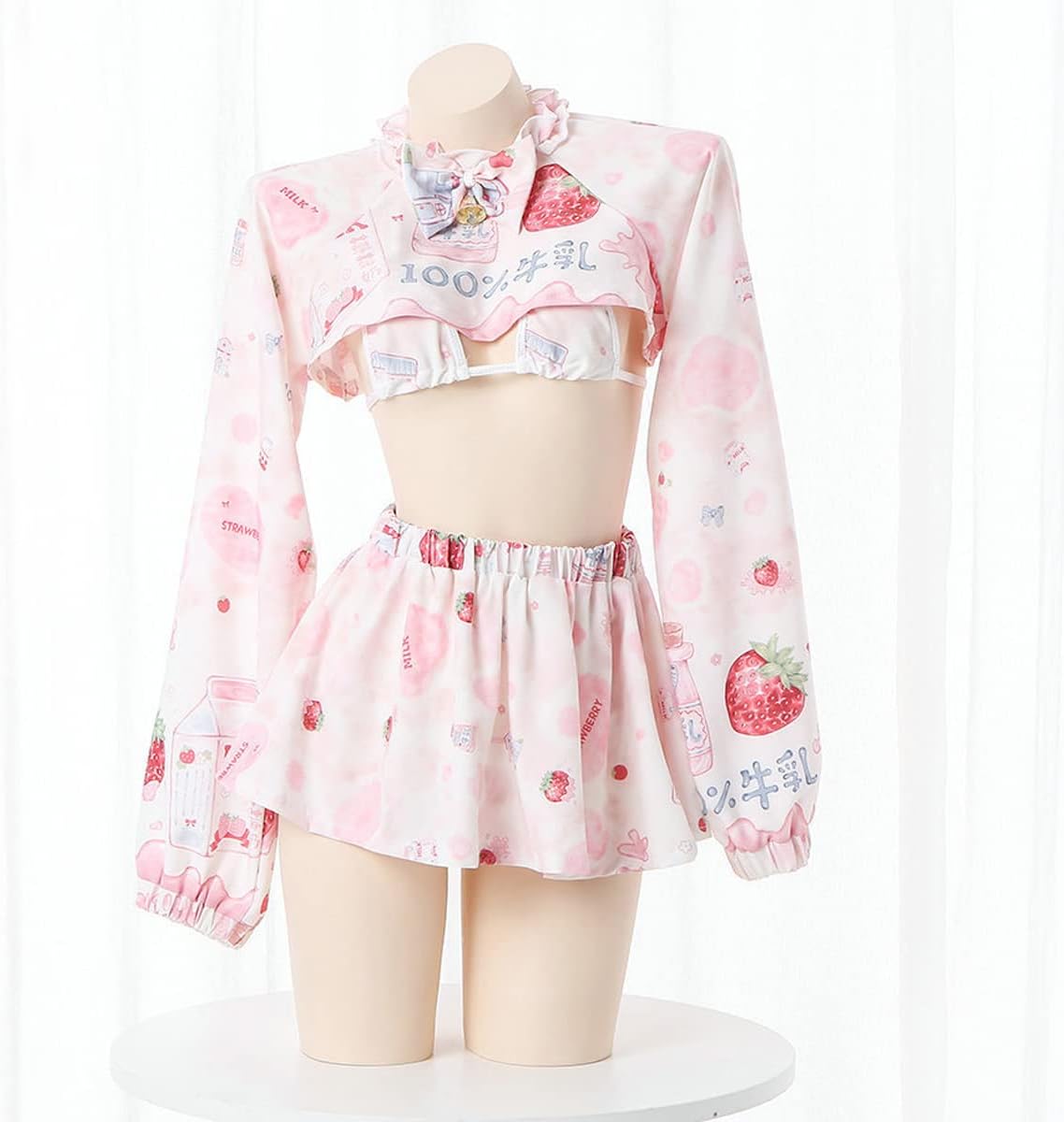 Japanese Sexy Lingerie Costume Uniform Cute Anime Cosplay Bikini Underwear with Long Sleeve Crop Top , Bandage Bra and Pleated Skirt. Suitable for Asian Size XS , S, M, Weight Below 65kg, Package Content 1 * Long Sleeve Hoodie Crop Top , 1 * Bikini Bra , 1 * Cartoon Prints Skirt . Size Chart:One Size : Top Bust 100cm, Length 24cm , Shoulder Sleeve 75cm , Thong Waist 66-84cm , Skirt Waist 62-100cm , Length 25cm