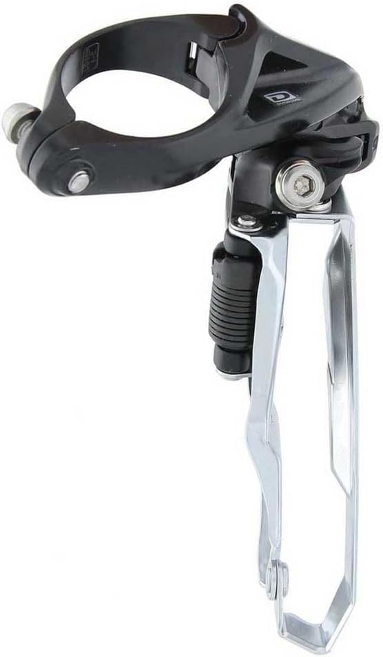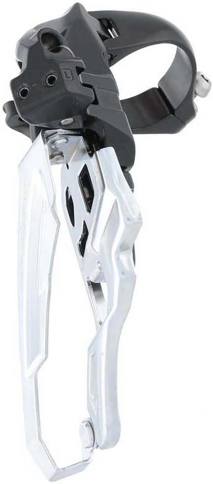 Wide link design Dyna-Sys 10-speed Deore MTB front derailleur Side swing, side pull front derailleur decrease problems with tyre clearance and reduces cable friction Designed specifically with modern trail bikes in mind, Shimano side swing technology front derailleurs increases tyre clearance, while cable routing resulting in the lightest shifting action yet Side pull cable routing Wide pivot link design for greater torsional rigidity improves shifting response and service life Conventional high clamp band mount, comes with the necessary shims for all band dimensions Dyna-Sys 10-speed MTB drivetrain compatibility Reinforced steel chain guide offers high strength and rigidity for improved shifting response For triple 40-42 tooth chain ring For 66-69 degree chain stay angle