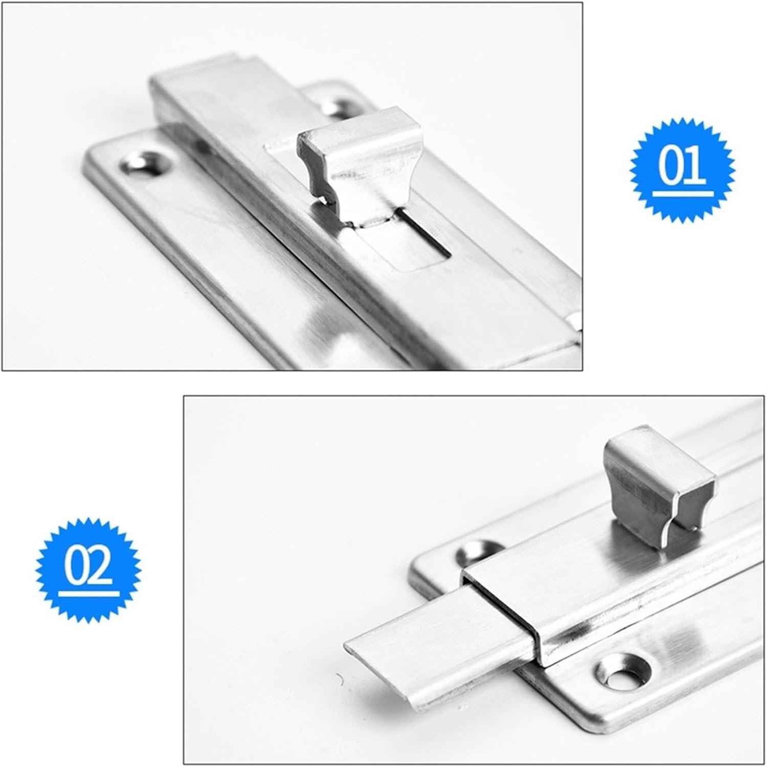 HighlightsMade of stainless steel, Just screw in, easy to install and maintain. for bathroom, bedroom and cupboards, shed wooden door, etc.The sliding bolt action provides a solid closing mechanism, it can be inserted to secure the door, providing enough strength and stability for any door.SpecificationsColor: SliverMaterial: Stainless SteelInstallation Method: Screws inPackage:1x Door Bolt6 x Fixing ScrewsNote:Please allow 1-3cm errors due to manual measurementDue to the difference between different monitors, the picture may not reflect the actual color of the item. Thank you!