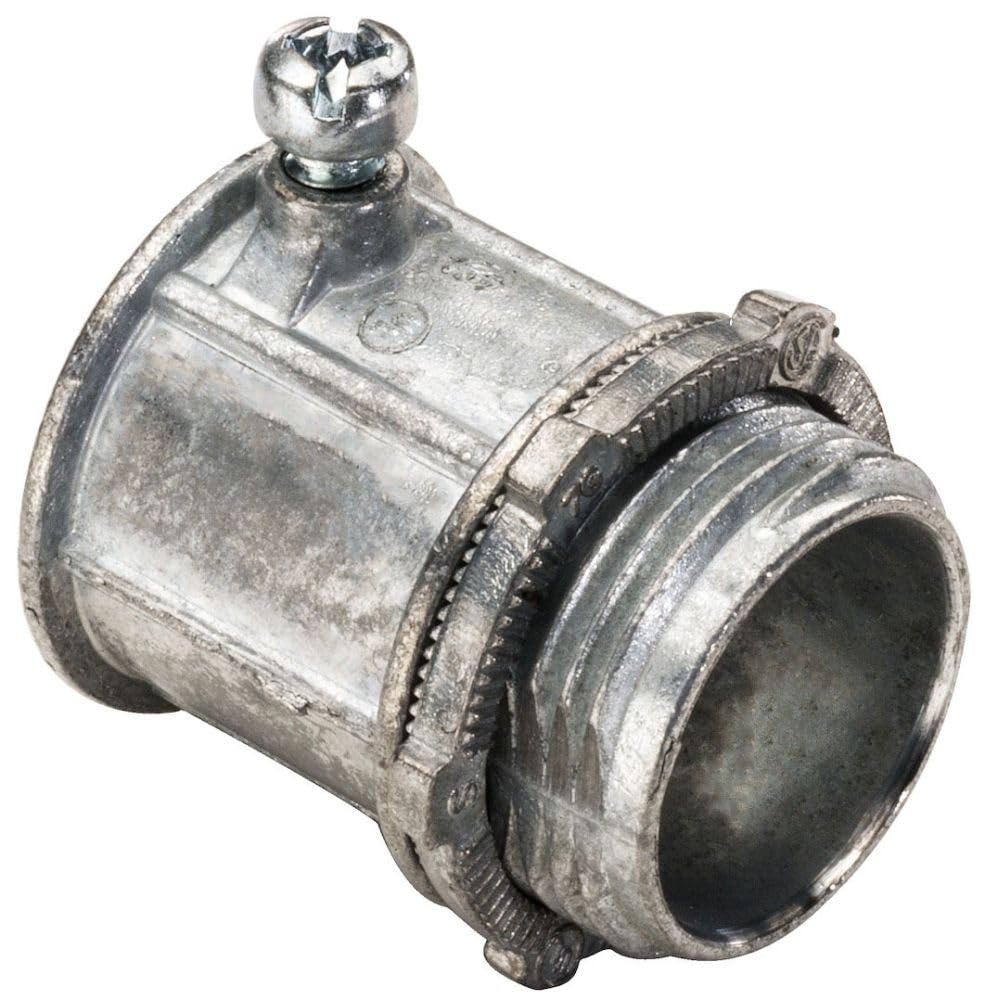 The EMT Set Screw Connectors are designed to connect and effectively bond EMT conduit to steel outlet boxes, load centers and other metal enclosures. Their bodies and locknuts are made with die-cast zinc alloy for strength and their set screws are made from zinc-plated steel.Features: - Connect and effectively bond EMT conduit to steel outlet boxes, load centers and other metal enclosures - May be used indoor and in concrete-tight applications when taped - Made with zinc-plated steel - UL listed for safety