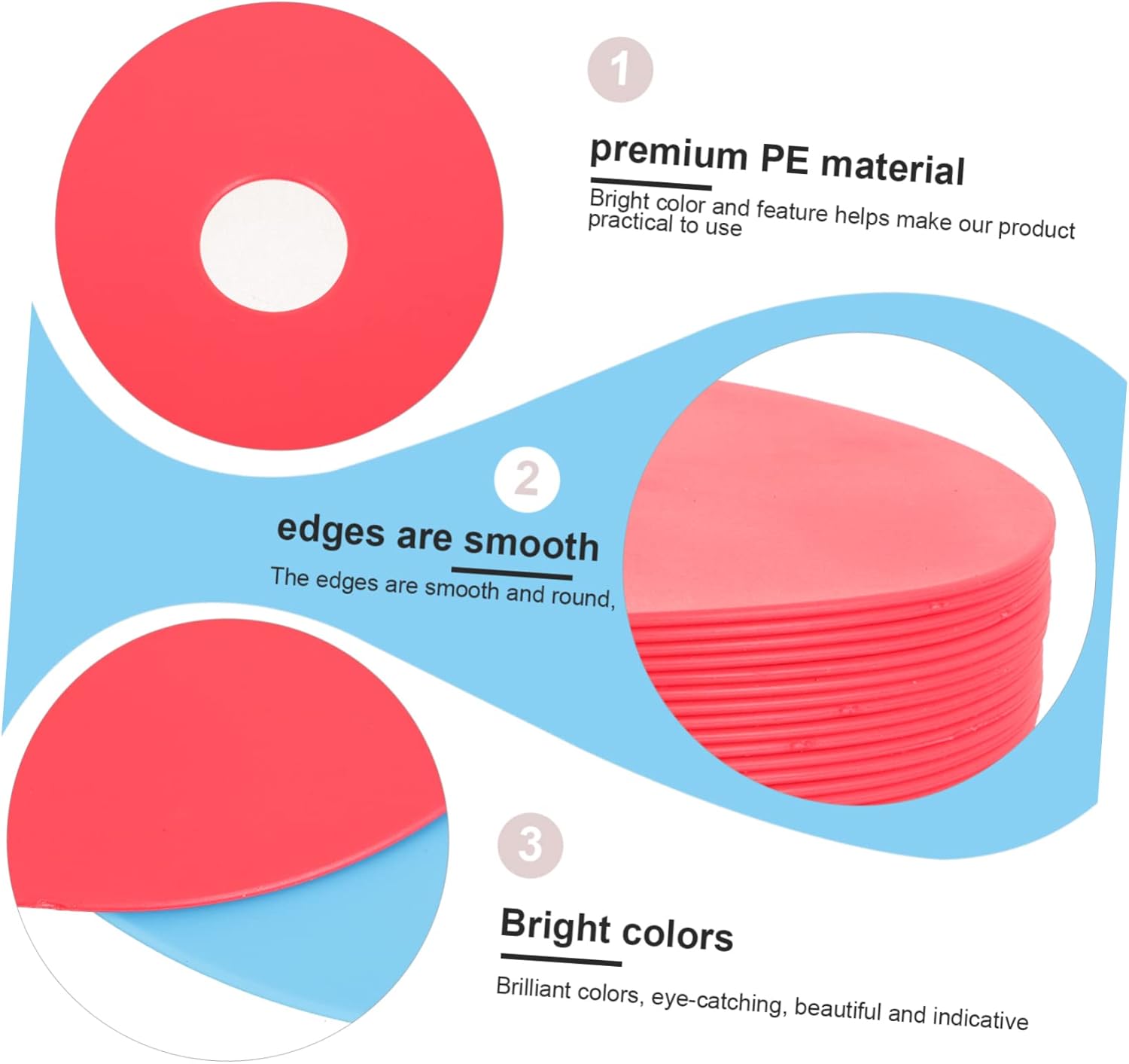 Package List 30 x Football Training Sign Discs Characteristics -Color:Assorted Color football training tools -Material:PE disc markers -Size:15.30X15.30X0.20cm/6.01X6.01X0.08in soccer training equipment -This training soccer sign disc can be perfect tools for football and soccer training use. soccer training sign pad -These markers are perfect for football, soccer, basketball and different sports, school training grounds, classrooms and events football training accessories. - workmanship, high-class materials, not easy to fade, not easy to deform and break. Practical and durable training discs for football. -Adopted of premium PE material, moderate hardness, bending is not easy to damage football training equipment. -Can be the perfect for your friends who like soccer or football, very practical football equipment training.Goods Descriptionsoccer training equipment Made of PE material, Football Training Sign Disc has durable properties, safe and practical.football training accessories Bright color design, versatile interior and outdoor use.soccer markers Lightweight, flexible and durable.soccer marker Suitable for roller skating, skateboarding, football, outdoor activities, transportation, parking lots, etc.football training tool Good toughness and long life