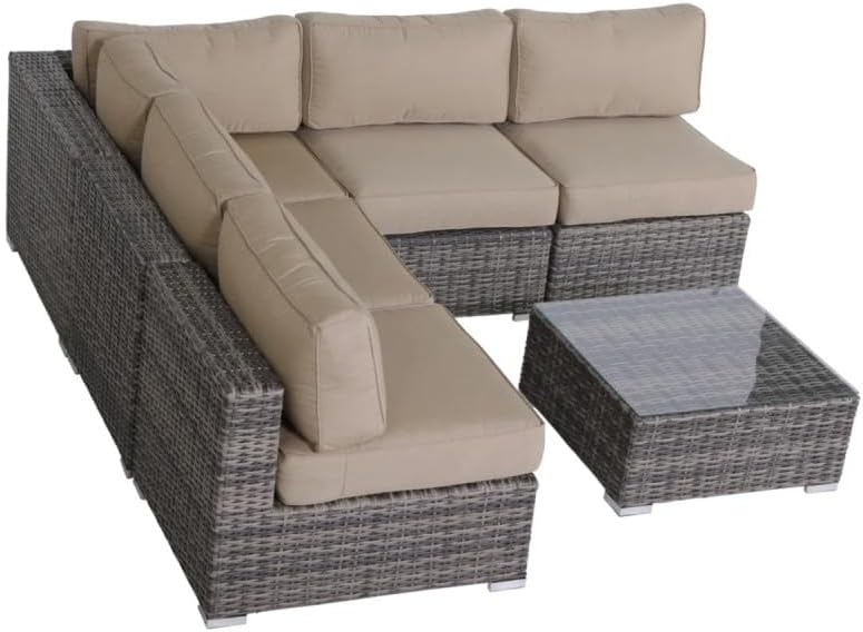 Designed for lasting comfort and relaxed outdoor living, this wicker patio set combines handwoven resin wicker construction with supportive foam cushions wrapped in solution-dyed polyester fabric. The frame uses powder-coated steel for rust resistance and structural stability on patios, decks, or covered porches. Complete set includes:1 x loveseat (62.5" W x 30.5" D x 33" H)2 x armchairs (30.5" W x 30.5" D x 33" H)1 x coffee table (39.5" W x 20" D x 17.5" H)Cushion thickness: 4 inches on seats, 3 inches on backs. Table capacity: Top surface supports up to 50 pounds. Compared to standard sets, this configuration offers deeper seating depth (24 inches) and wider armrests (4.5 inches), improving long-session comfort. Cushions feature removable, machine-washable covers with double-stitched seams and non-slip bottom fabric. Care instructions:Wipe frames with a damp cloth.Air-dry cushions thoroughly after rain exposure.Store indoors during extended winter months.Avoid direct pressure from sharp objects or prolonged UV exposure without a protective cover.