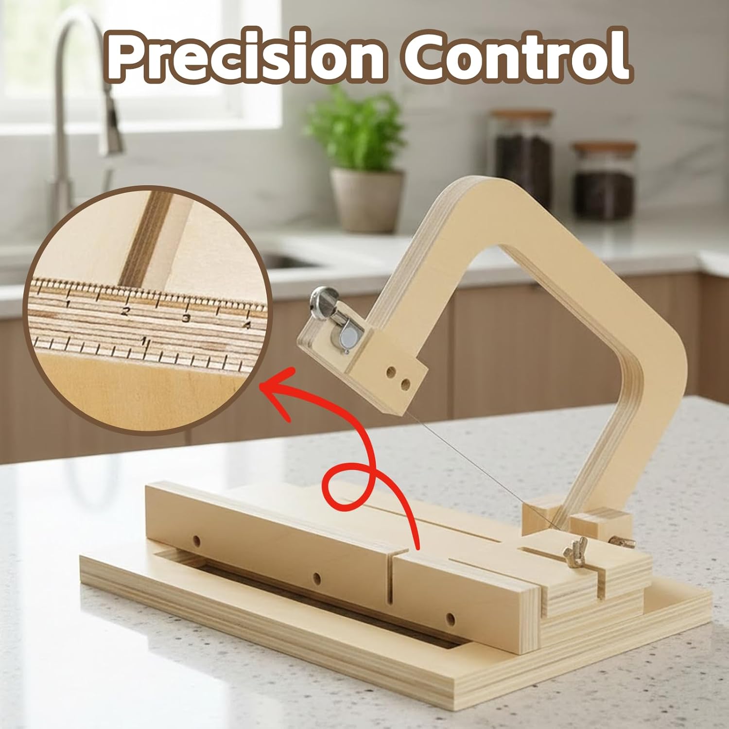 This wooden soap cutter is designed to help soap makers achieve clean, uniform cuts with ease. Built with a sturdy wooden frame and stainless steel wire slicer, it delivers smoother results than traditional knives while reducing effort and mess. The adjustable thickness design allows you to control the size of each soap bar precisely, making it easy to create professional-looking handmade soap. Clear scale markings simplify setup, while the stable base with non-slip pads ensures safe and steady operation during use. With a generously sized cutting area, this soap loaf cutter accommodates most standard soap loaves. The included extra replacement wires extend the product’s lifespan and make it a reliable soap making supply for long-term DIY projects. Beyond soap making, this versatile wire cutting tool can also be used for candles, cheese, butter, chocolate, bread, and other soft materials—making it a valuable addition to any crafting or kitchen setup. Ideal for personal use or as a practical gift for DIY enthusiasts.