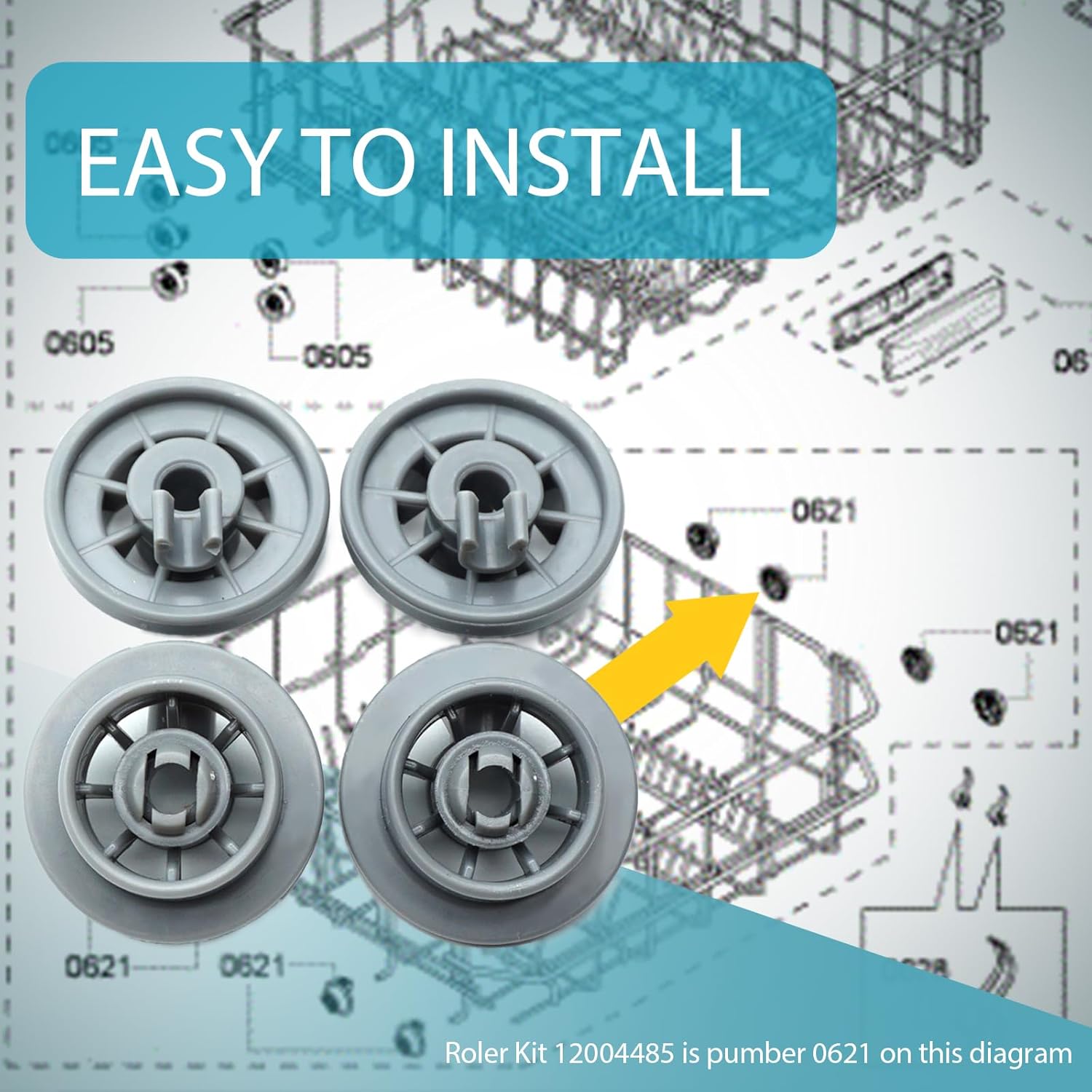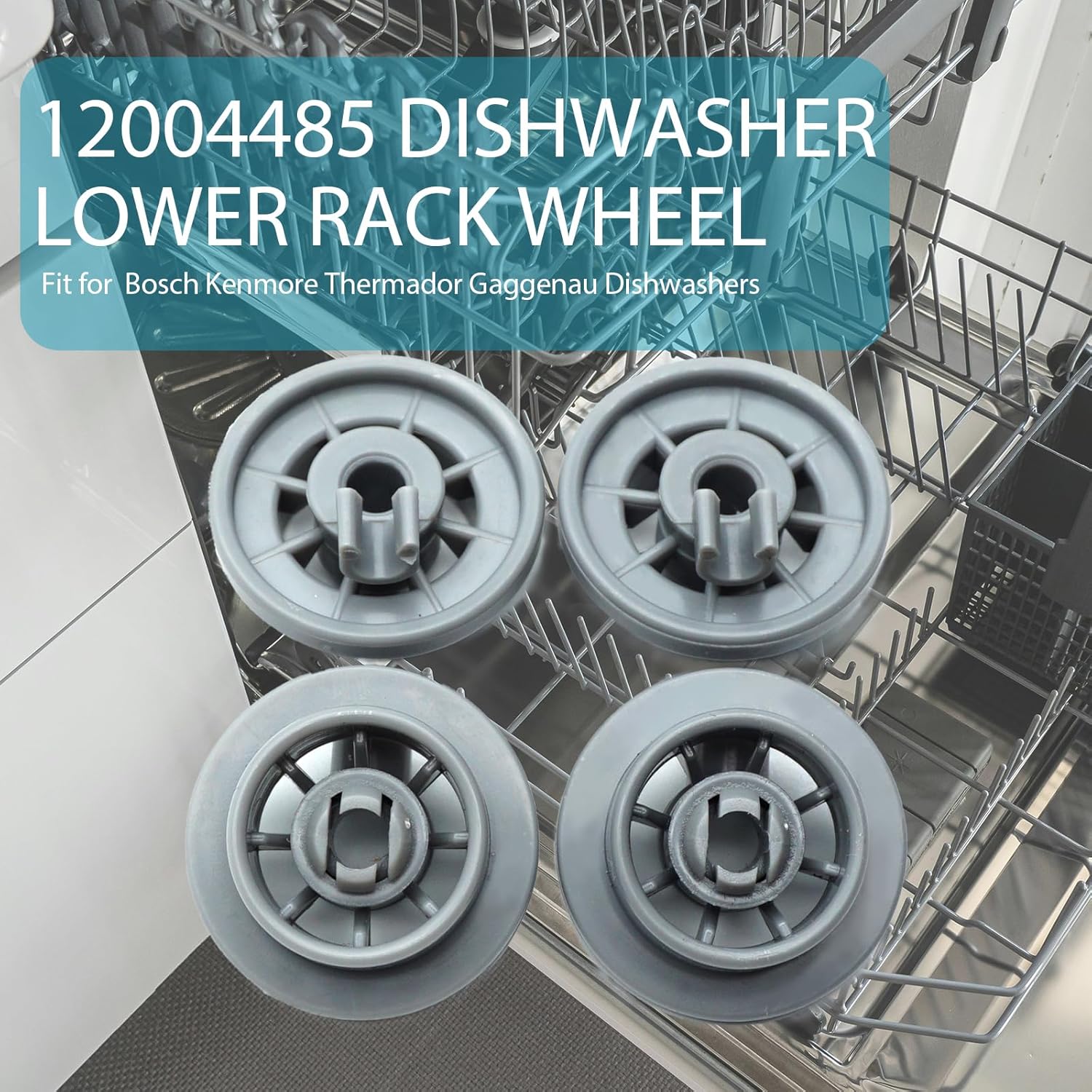Replacement Lower Dish Rack Wheel and Axle Assembly Includes 1x Dish Rack Roller & Axle Sets Compatible Models Fit for Bosch Kenmore Thermador Gaggenau Dishwashers Equivalent Part Numbers: 4485, AP5951432, PS10058839 Dishwasher Rack Wheels 12004485 Replaces Part Number: 4580120, 4163859, AP6262276, AP5951432, EAP12367111, EAP10058839, PD00036796, PD00042526, PS12367111, PS10058839 Quick, Tool‑Free Installation: Snap the old wheels off and pop these in place in under five minutes no special tools or technical know‑how required The 12004488 Dishwasher Roller Kit allows the dishwasher rack to roll in and out of the dishwasher. Your rack rollers might have to be replaced if: A roller or rollers are damaged or missing The center of a roller or rollers are worn making the rack not ride properly. Specifications: Color: Gray Material: Plastic Finish: Satin