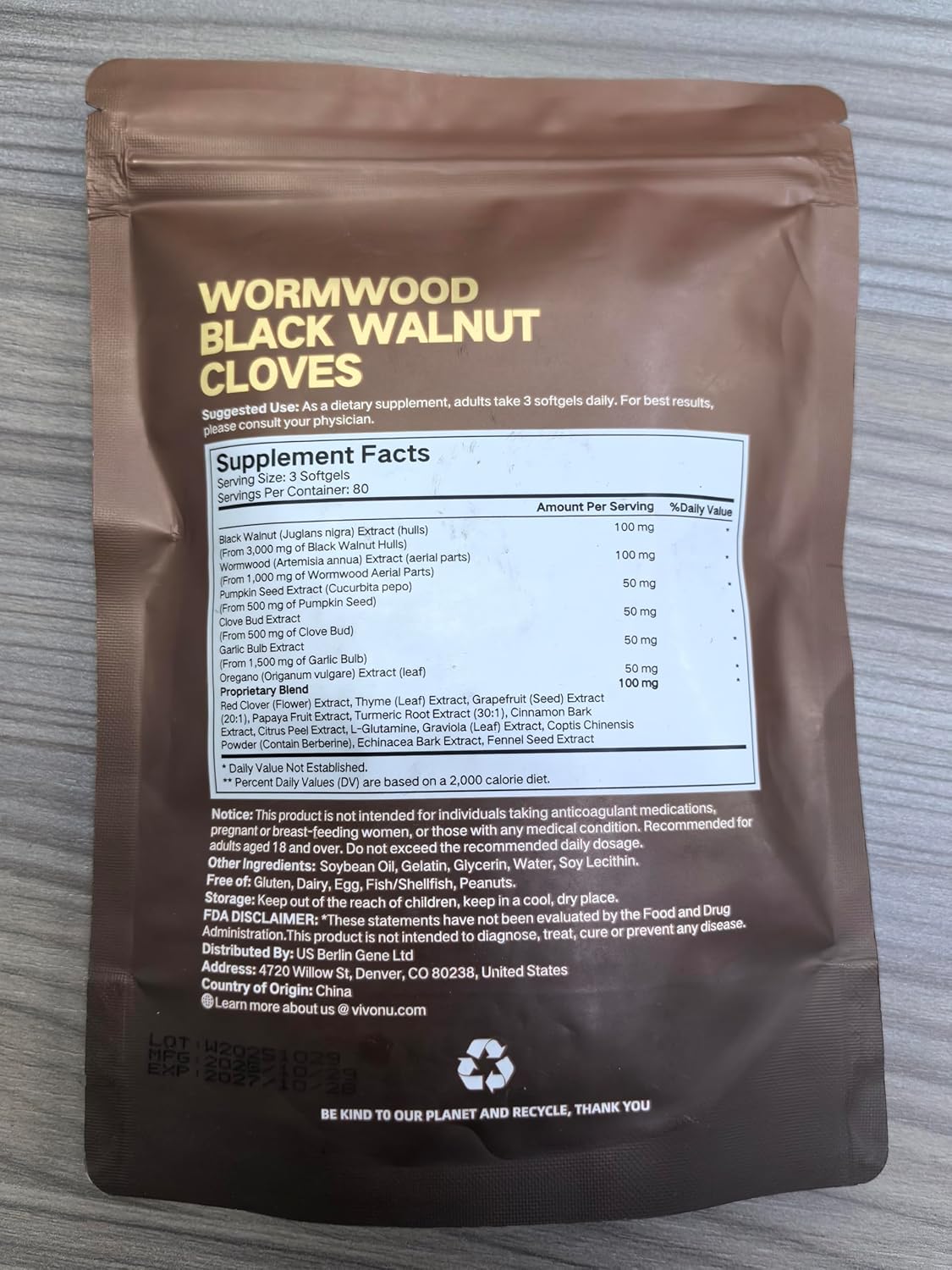 | Primary Supplement Type | Wormwood Black Walnut |