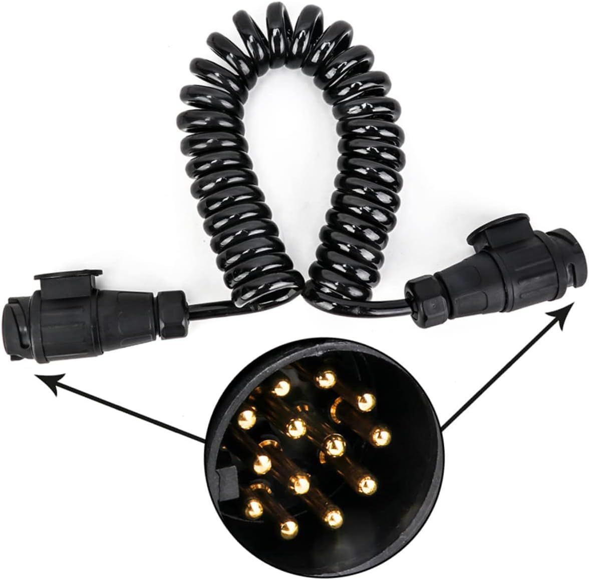 Package Include 1 x 13 Way Trailer Connector Characteristics - Size: approx 13 x 45 x 4cm- Splices into existing wiring to provide connections for both vehicle and trailer 13 pin trailer connector. - Color: Black 13 wire trailer wiring - Material: Plastic and metal 13 way trailer connector for transportation - 13-way output connects lights, brake lights and turn signals trailer wiring. trailer for faulty car - A necessary accessory for trailer executing its mission and ensuring the safe in transportation. - Looped wire can also be used as a wire extension for an existing connector. - Constructed with bonded wires for easier installation.Goods Information13 way trailer connector for transportation This is found on small boat, utility, , snowmobile, and small camper trailers where /brake, left turn/brake, /marker lights and ground is needed.trailer wiring A 13 pin trailer connector is the commonly used trailer . This connectors are designed and manufactured to give you a reliable connection every time you in your trailer