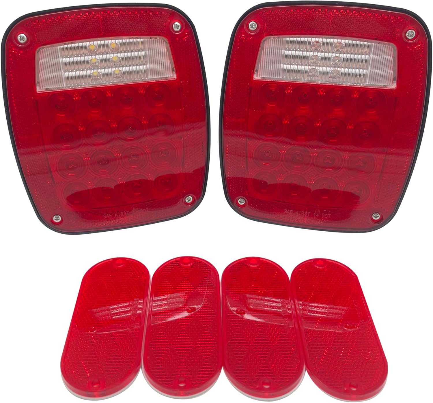 ๐ DOT COMPLIANT & UNIVERSAL FIT Meets DOT FMVSS108 safety standards, legal for highway use. Perfectly fits most Trucks, Trailers, RVs, Jeeps, Boats, and Buses. A true plug-and-play replacement for your worn-out lights. ๐ง FULLY SUBMERSIBLE & WEATHERPROOF Engineered with a superior waterproof seal and corrosion-proof housing. Withstands heavy rain, mud, snow, and car washes without failure. Built for durability in all environments. ๐ก ULTRA-BRIGHT & MULTI-FUNCTION LEDS Features 38 high-lumen LEDs (16 Red for Stop/Turn/Tail + 18 White for Reverse + 4 White for License Plate). Provides instant, brilliant illumination for maximum visibility and safety day and night. ๐ฐ LONG-LASTING & ENERGY EFFICIENT LEDs last 30-40 times longer than incandescent bulbs and draw less power. Save money on frequent bulb replacements and reduce strain on your vehicle's electrical system. ๐ง EASY 3-STUD INSTALLATION Comes with 4 color-coded wires (Black-Ground, Red-Brake/Turn, White-Tail, Yellow-Reverse) and a standard 3-stud mounting pattern. Includes 4 DOT red reflectors. Install in minutes with basic tools. Upgrade Your Vehicle's Safety with EAGLE KING PRODUCTS Professional-Grade LED Tail Lights Tired of dim, burnt-out, or leaking tail lights that compromise your safety? Our 2PC Universal LED Tail Light Kit is engineered to deliver unmatched reliability and brilliance on every journey.