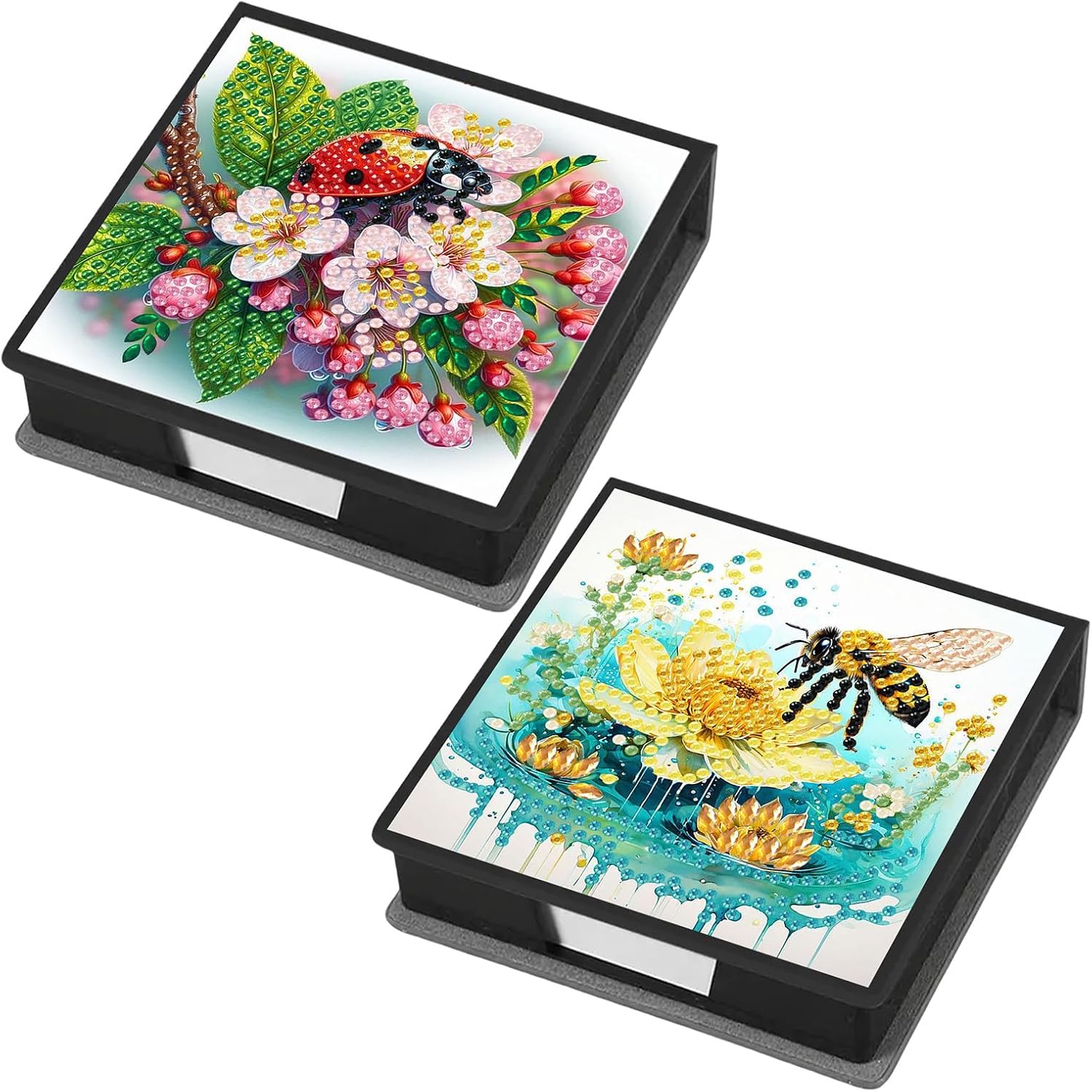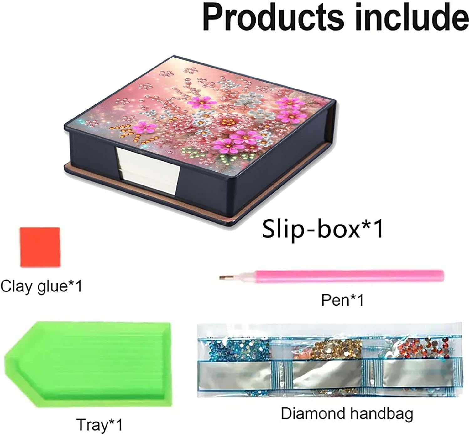 Product name: DIY diamond note boxDrill type: bright diamond/special-shaped diamondProduct material: leather + ABSProduct size: as shown in the pictureProduct packaging: opp bag packagingProduct packaging size: about 15X15X5CmProduct includes: 1X note box, 160X note paper, 1 set of drill bag, 1X tool kitProduct features:1. Improve ability: It can enhance people's hands-on ability and color matching ability, cultivate concentration and happy self-discipline. Enjoy the fun of the DIY process and create beautiful paintings.2. Easy to learn: Suitable for diamond art painting beginners and enthusiasts.3. Home decoration: Diamond art painting creative pattern design, multi-faceted cutting, gorgeous and eye-catching, can be used in study, dressing table, bedroom, living room and other places to achieve practical and decorative effects.4. Neat storage: The art of storage, enjoy a neat life, store note paper in a centralized manner to prevent scattering or loss, keep the desktop clean, easy to open and close, and easy to take.DIY diamond art painting production steps:1. Open the package and check whether the tools for diamond art painting are complete;2. According to the resin diamond color code, choose a color on the plate. If you paste the same color at one time, you can increase the speed;3. Find the corresponding color code on the canvas and start pasting until it is completed;4. After it is completed, in order to make the diamond art painting stable, you can take some books and press them on the canvas for a while;5. Finally it is done.Note:This is a DIY diamond art painting, not finished, you need to complete it yourself. All products are measured manually, please allow 1-2 cm deviation