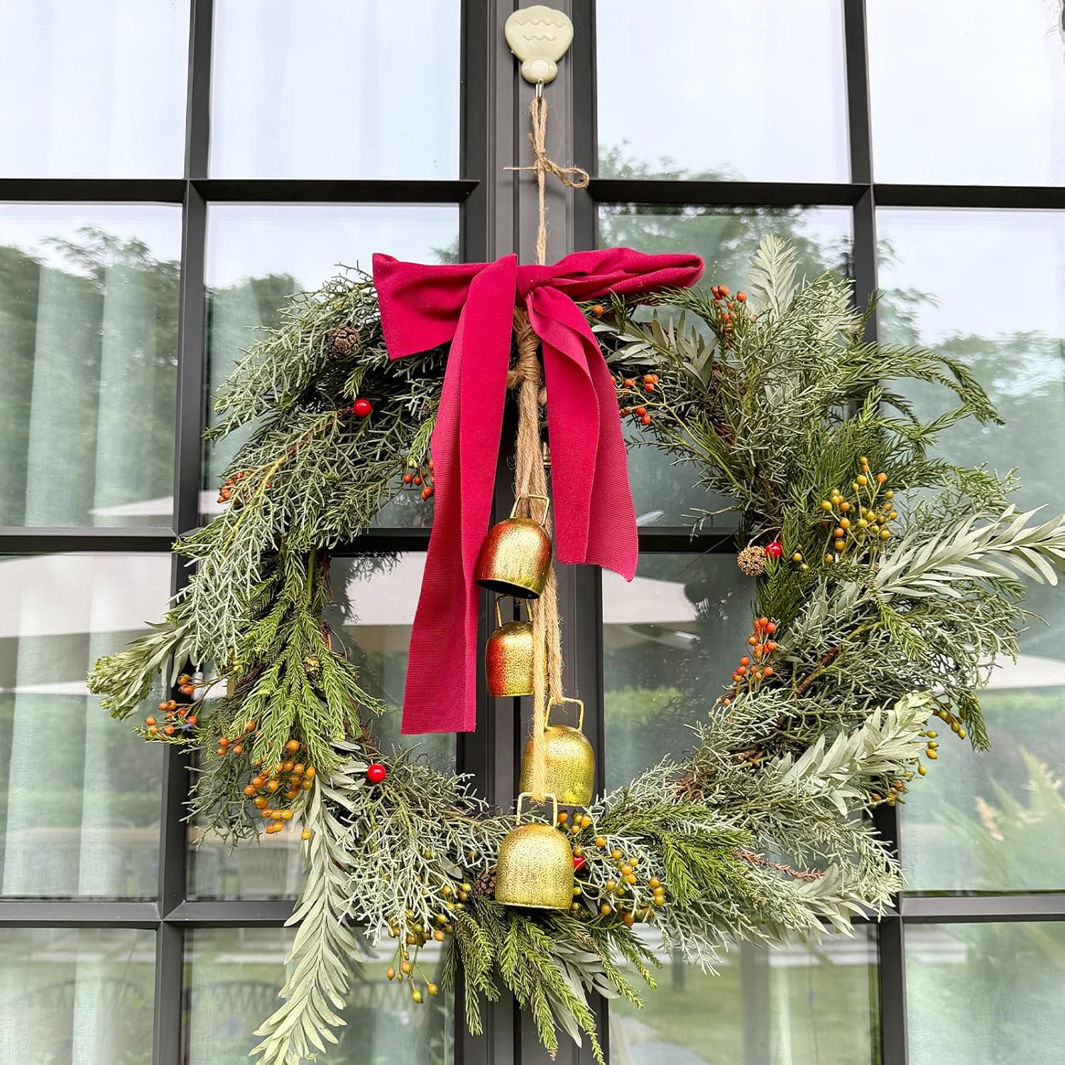 4 Sets Christmas Rustic Metal Hanging Cow Bells, 4 Harmony Wind Chimes Xmas Iron Vintage Bells with Rope for Christmas Tree Wall Garden Garland Decor