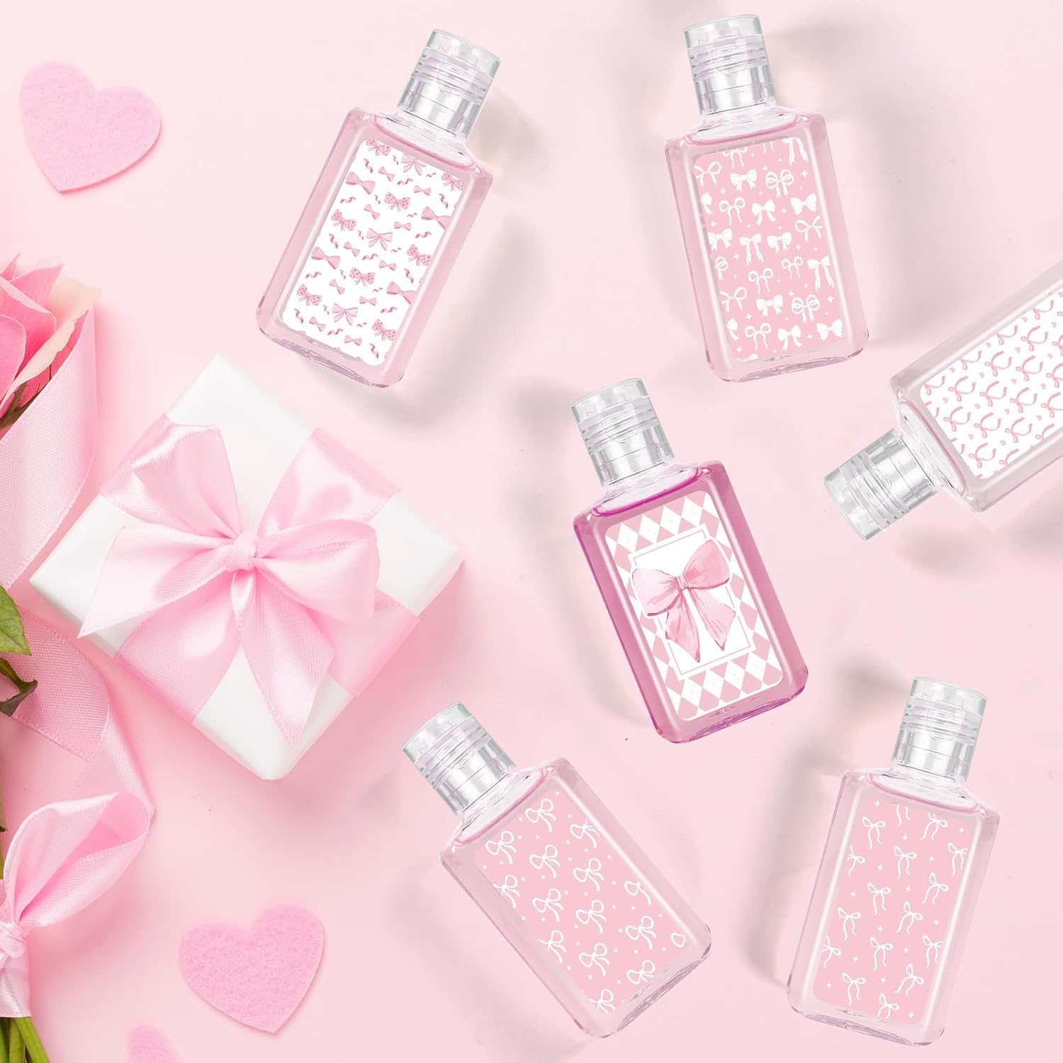 1 ounce of hand sanitizer size is about 3.4 x 7.6 cm, light weight and portable, can be easily stored in handbags, suitcases, cars, desks, etc., will not take up too much space. Size:3.4 x 7.6 cm Color:as shown in picture Products include: 50 x Pink Bow Hand Sanitizer Note: Manual measurement, please allow slight errors on size.