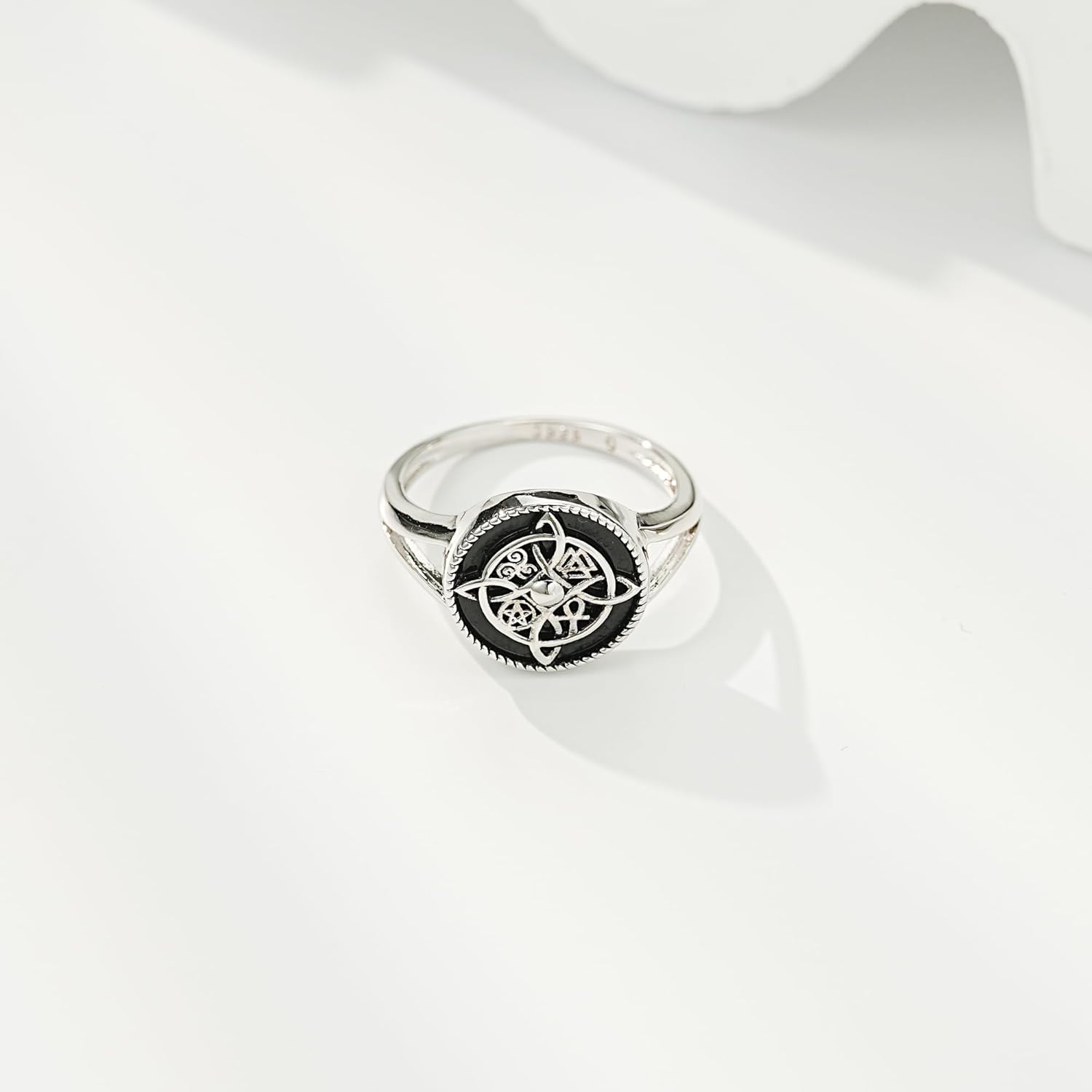 Embrace the mystical allure of this intricately crafted Witches Knot Ring, a stunning piece of sterling silver jewelry that seamlessly blends ancient symbolism with contemporary style. Meticulously crafted from genuine 925 sterling silver, this Celtic knot design carries deep spiritual significance in pagan and Wiccan traditions. The endless, interweaving pattern symbolizes protection and the interconnected nature of all things. Available in sizes 6 through 10, this versatile ring suits both men and women who appreciate meaningful jewelry. The timeless design makes it perfect for daily wear or special spiritual occasions. Each curve and twist in the Celtic knot pattern has been carefully detailed to create a piece that's both visually striking and rich in traditional symbolism. The substantial sterling silver construction ensures durability while maintaining a comfortable fit. Whether you're drawn to its protective symbolism or simply appreciate its artistic beauty, this ring serves as a powerful personal talisman and striking accessory.