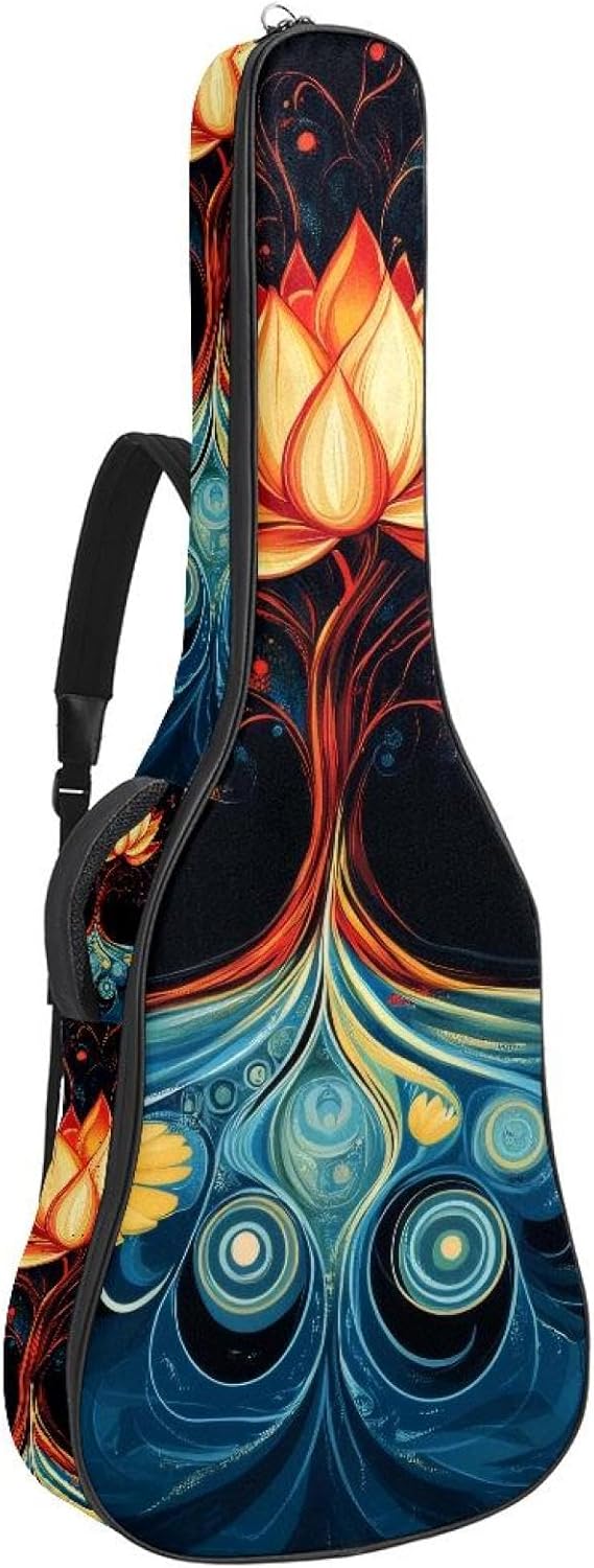 Give your valuable guitar the premium protection it deserves. Our Cute Printed Guitar Gig Bag is engineered for the modern musician who demands both security and convenience. Whether you're heading to a gig, a practice session, or on a short trip, this bag ensures your instrument arrives in perfect condition, ready to play.Constructed from durable, waterproof Oxford cloth, this bag stands up to the elements and the test of time. The interior is a sanctuary for your guitar, featuring ultra-thick padded sidewalls and a soft, anti-scratch lining that cradles your instrument, preventing scratches and damage. The heavy-duty rubber base acts as a shield against everyday bumps and allows for stable placement on any surface.Organization is effortless with multiple dedicated compartments. Two main storage pockets keep all your essential accessories—like a foldable music stand, tuner, picks, cables, and extra strings—neatly sorted and easily accessible. Never fumble for your tablet or sheet music again; the specially designed back pocket keeps them safe and separate.For a perfect, secure fit, the adjustable neck support and internal Velcro strap ensure your guitar does not shift around inside the bag, providing peace of mind with every carry.Care Instructions: To preserve the quality and appearance of your gig bag, please do not machine wash. Simply wipe clean with a damp cloth to remove any dirt or stains.