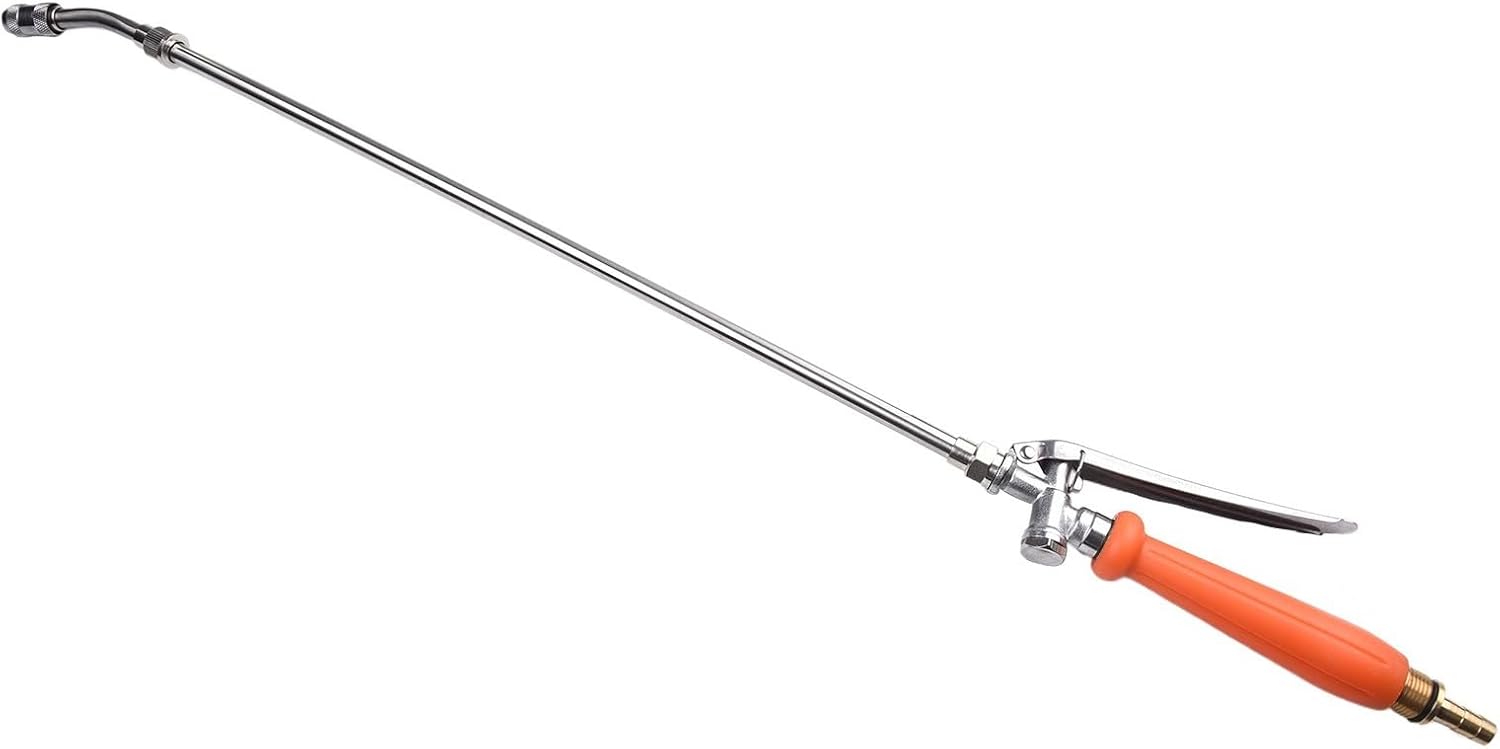 Features:*Sprayer are made of high-quality metal and are*Rubber grip, effective anti-slip.*2 brass barbs to fit most 3/8" and /4" hoses respectively. The barbs can be easily replaced to accommodate different hose sizes with just a few turns.High-quality brass, corrosion-resistant and rust-proof.*Just rotate the nozzle slightly to make it mist or straight according to your needs.*The metal handle has a locking function to reduce hand fatigue.*Simple and convenient installation, first cut off the hose and sliding clamp, then insert the new rod into the hose and tighten with the new clamp.Specifications:Material:Stainless SteelItem Dimensions:LxWxH 29 x 4 x .5 inchesBrass Barb Sprayer size:/4"& 3/8"Inlet Connection Type:BarbOutlet Connection Type:BarbColor: orange, silverPackage Contents1:1*Sprayer2*brass barbsPackage Contents2:2*Sprayer4*brass barbs