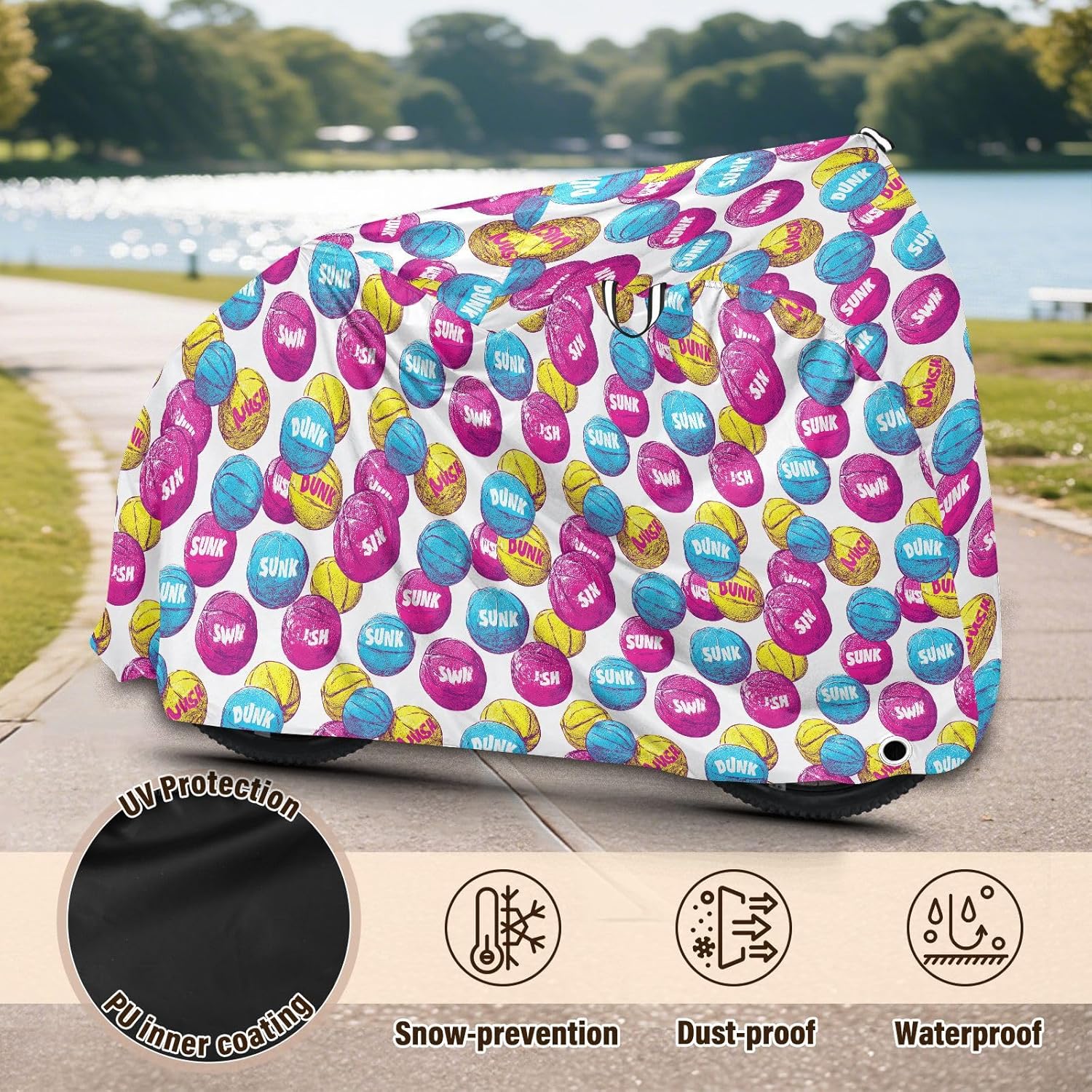 Dimensions: 69*42*21.6Inches. Outdoor Bike Cover is suitable for most ordinary bicycles. Please measure the length, width and height of the bicycles before purchasing to avoid buying the wrong size.Material: Umbrella waterproof fabric. Road Bike Cover has strong tear resistance and can effectively deal with some extremely complex weather conditions, providing comprehensive protection for your bicycles.Product Function: This Bike Cover Outdoor not can prevent rainwater from wetting the bike body in rainy days, but also can block direct ultraviolet rays, providing shading, heat insulation and protection against rain and snow weather.Safety & Anti-theft: Lock holes are reserved at the front wheel position and lock buckles at the rear wheel position to prevent wind dissipation, making it convenient to use and achieving an anti-theft effect. Outdoor Bike Cover is convenient to use and can be easily folded into a portable size. When not in use, it can be put into a storage bag.Outdoor Accessories: This Bike Cover provides a protective guarantee for your beloved car and is an essential accessory for outdoor camping. It can also be given as a present to your fellow colleagues and friends.