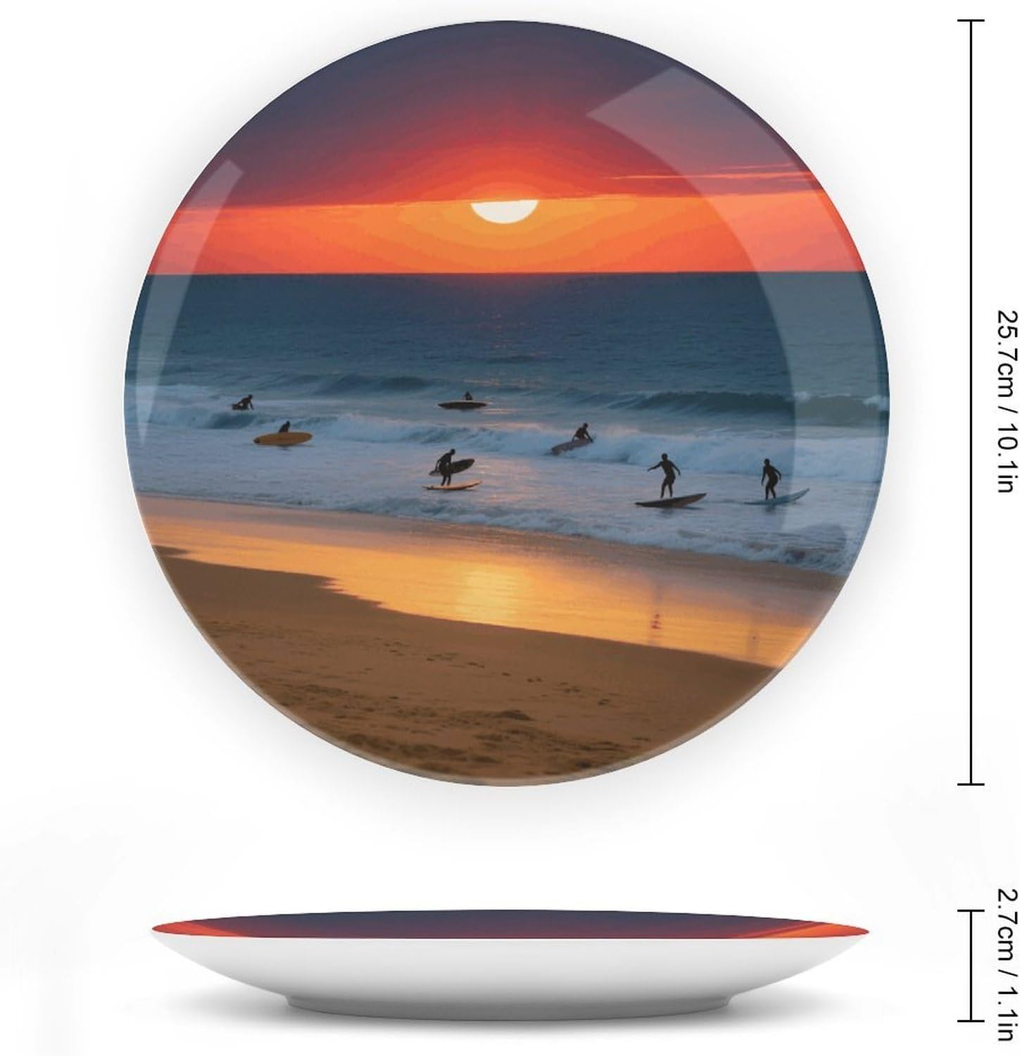 Our ornament is made of bone China material, which is sturdy and durable, and the surface is smooth and does not cut hands. Versatile to decorate your space or serve as a dinner plate. Microwave & dishwasher safe. Sturdy, fashionable at the same time, safe for everyone to use. This Beach Red Sunset disc decoration comes with a display stand, which can be displayed in a porcelain cabinet, shelf arrangement or side table. It can be placed three-dimensionally, placed on the table with the base, or hung up, easy to disassemble, both decorations are very beautiful. It is a beautiful landscape. Perfect for daily use in homes, kitchens, houses, offices, cabinets, walls, banquets, or exhibition halls, it looks very elegant and artistic, bringing vitality and color to your space. As a beautiful gift for lovers, friends, and family on special occasions or holidays such as valentine's day, mother's day, father's day, halloween, and christmas.