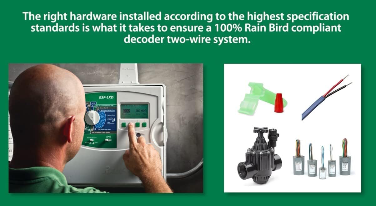 Rain Bird Field Decoders provide easy, cost-effective installation and expansion for SiteControl Decoder or ESP-LXD Decoder Central Control Systems. Decoders are installed out of sight to help protect them from the elements and vandalism. A technology long-since proven on golf courses around the world, Rain Bird decoders provide "best-in-class" field control on centrally controlled 2-wire irrigation systems. Installed underground and featuring simple, low-cost wiring, decoders are an aesthetically pleasing, full-featured, economical option for reliable in-field control. A simple wiring configuration and absence of protective enclosures keeps installation and maintenance costs low. Rain Bird decoders are a “true lower than 30 volt” system that utilize a two-wire path of 14-gauge wire connecting the central control system, decoders and valves or valve-in-head sprinklers. With all electronic components fully sealed within a water‑tight enclosure and buried underground, damage from floods, frost, rodents, or vandals is virtually eliminated. Rain Bird decoders are an especially good choice for flood plains.
