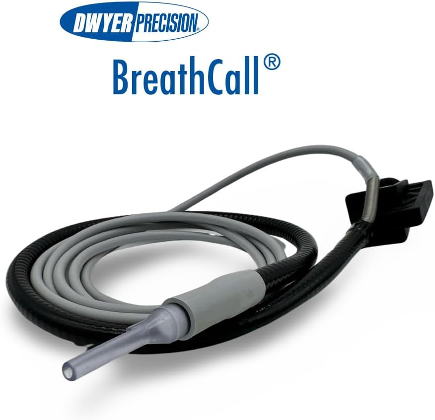 The BreathCall is a pneumatic (air-activated) nurse call cord that works with virtually any nurse call system. BreathCall is for patients with little to no motor skills and is activated by simply breathing into a disposable straw and filter assembly. It has a flexible gooseneck with universal mounting clamp. The Mini Breath Call offers the same features of the standard with a more streamline design to fit smaller areas. All BreathCalls come with a 9' cord, clamp and filter and straw kit. Standard Breathcalls have 36" black tubing from clamp to mouthpiece, and Mini BreathCalls have 28" white tubing. BreathCall and Mini BreathCall are single patient use devices that require only a very small amount of pressure to activate the call function by simply blowing a small puff of air into the tube to activate. Easy Integration and No Voltage! The BreathCall, as with all of our products are NO voltage and are unique in their compliance with UL standards of safety. Our accessory packs (the part that plugs into your existing system) are simple to integrate into your current nurse call system. We offer an extensive list of options and can customize any of our cords to fit your needs. Why Pneumatic? All Dwyer nurse call cords are pneumatic so they are safe in oxygen-enriched-environments and MRI testing rooms. Additionally, the BreathCall is easy-to-use and requires very little pressure to operate making it a great choice for patients with arthritis/joint or dexterity limitations. Clients also report patients satisfaction with its simplicity as many older patients find the multi-function/multi-button, remote style calls to be confusing. BreathCall makes it easy; Simply press the pad to call the nurse. Where is it used? The BreathCalll is used in a host of patient environments including, but not limited to: -Hospitals -Surgical Centers -Rehabilitation -Long Term Care -Nursing Homes -Hospital MRI -Imaging Centers Plug Description: This is a 1/4 Inch Right Angle Phone Jack style plug that has a brass ring and sleeve; This makes contact by tip and sleeve. *This is our "Universal" plug as it works with a broad range of systems but NOT ALL. We do however have over 800 plug and length variations so please check your wallplate or contact us before ordering to ensure you are ordering the correct plug. More information on our website at nursecallcords.com Not sure which system you have? No Problem! We can help. You can usually find the manufacturer name for your call system on the master station. If you dont see it there, that's okay as it may be written on nurse station or on components in the room station. If you can't find the manufacturers name, you may be able to identify what you need by simply looking at the plug at the end of your call cord (if you are replacing a cord) or by looking at the female receptacle in the wall plate (where you will plug the call cord in). Electrical Characteristics: Normally closed contact. blowing into soft straw mouthpiece breaks contact momentarily and system switches over to call circuit and holds call signal until reset at bed station or central nurse station is depressed.
