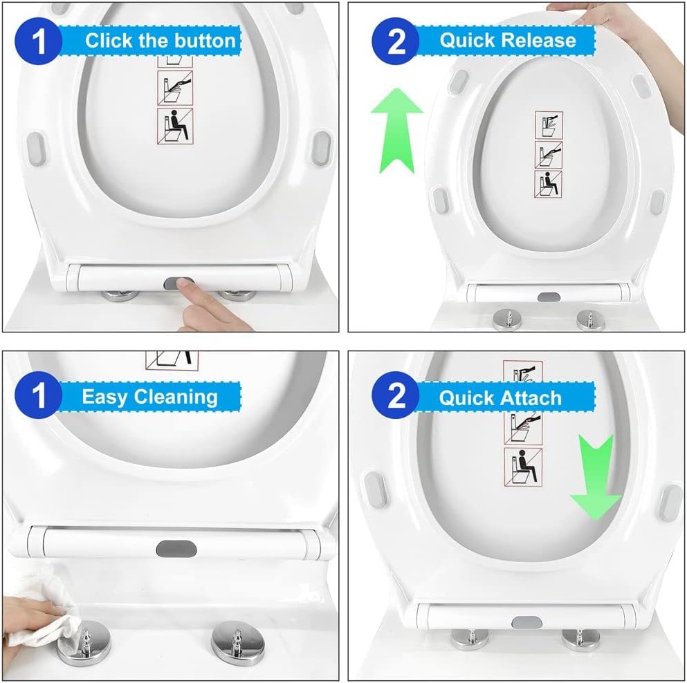 Do not use abrasive materials such as brushes or scouring pads to clean surfaces, just use a soft damp ragEasy to install, even an inexperienced person can complete the installation within 10 minutesClick the center button to remove the toilet seat, quick release hingeCreative -piece hinged base design increases stability and prevents shiftingNo need to bend over, tap the tap, and the toilet seat slowly closesSeat is ergonomically designed for increased seat comfortThe precision seat makes it adjustable fore and aft, for a toilet.Toilet seat material: acrylicNote:Due to the light and screen setting difference, the item's color may be slightly different from the pictures.Please allow slight dimension difference due to different manual measurement.Quantity :1pcs