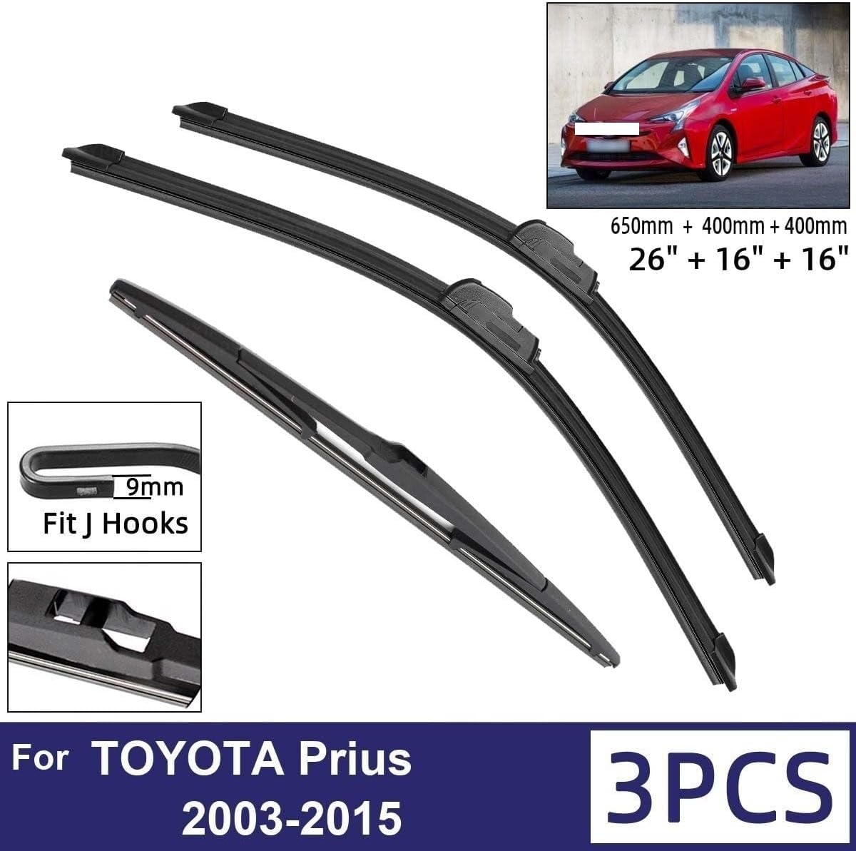 Car Front Rear Wiper Blades Soft Rubber Windshield Windscreen Wipers Auto Parts Car AccessoriesCompatible with TOYOTA PriusYears: 2003-2015 <; 2003 2004 2005 2006 2007 2008 2009 2010 2011 2012 2013 2014 2015>Front Wiper Size: 26"+16" <;650mm + 400mm>Rear Wiper Size: 16" <;400mm>NOT FIT FOR USA MODEL(NOT 26""+18"" )Condition: 100% Brand New(Quality Checked before shipping)Material: AAA Natural Rubber insures maximum performance