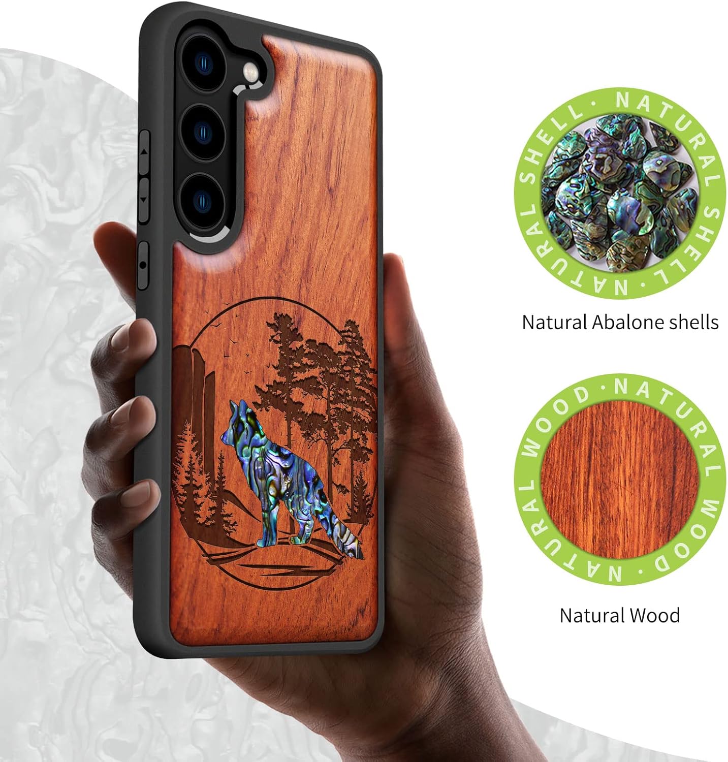 | Additional Features | Natural solid wood back panel and laser engraving, The unique solid wood keeps the palm dry and prevents fingerprints from sticking to the surface of the case, keeping it clean and elegant |