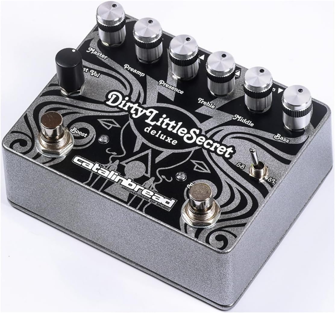 The Dirty Little Secret Deluxe represents the next logical step in Marshall Plexi emulation, reaching beyond the preamp circuit and adding the rest of the amp for an extremely authentic take on everything inside that chassis. Catalinbread’s original DLS circuit has been tweaked and upgraded throughout, now featuring a phase inverter, power amp sim and output transformer as well as some new features and the most requested modifications for the original. One such addition is a toggle switch on the outside to select between Super Lead and Super Bass modes, and they’ve also externalized the Presence knob to easily dial in your preferred Marshall flavor. Also added is a piece of the Dirty Little Secret—a single preamp tube simulator—as a built-in boost circuit that can be used independently of the main circuit. You can run the boost and DLS in any order you like; put the boost before the DLS for a high-powered saturated tone or after to pummel the front end of your amp. A new tightness knob lets you shave off the sub-bass for a little extra clarity or completely attenuate the low end for some cool thrash metal tones. A Line Out jack gives you a dedicated +10dB output that you can use with a mixer or DAW, and you can use both outputs simultaneously. Between the Boost, order selector and the external Super Lead/Super Bass modes, the Dirty Little Secret Deluxe is engineered to be a total performance tool that does the line justice.