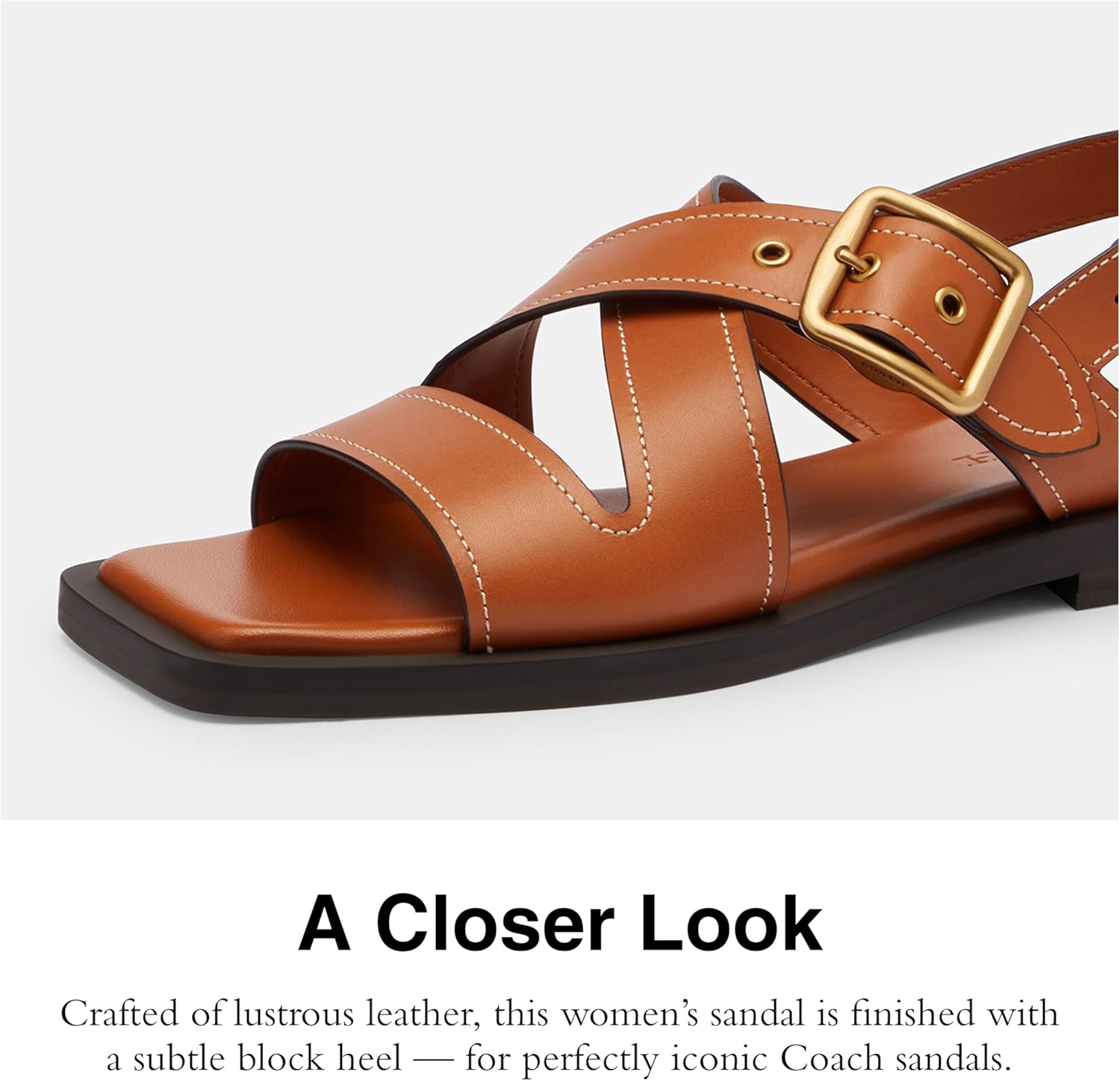 Detailed with archival buckles in a nod to our heritage, this strappy flat leather sandal features a comfortable padded footbed for all-day wear. The flat square-toe silhouette is finished with a subtle block heel and rubber outsole for added traction. Leather upper, man-made leather lining, leather footbed, rubber outsole, buckle closure, 1/2" heel