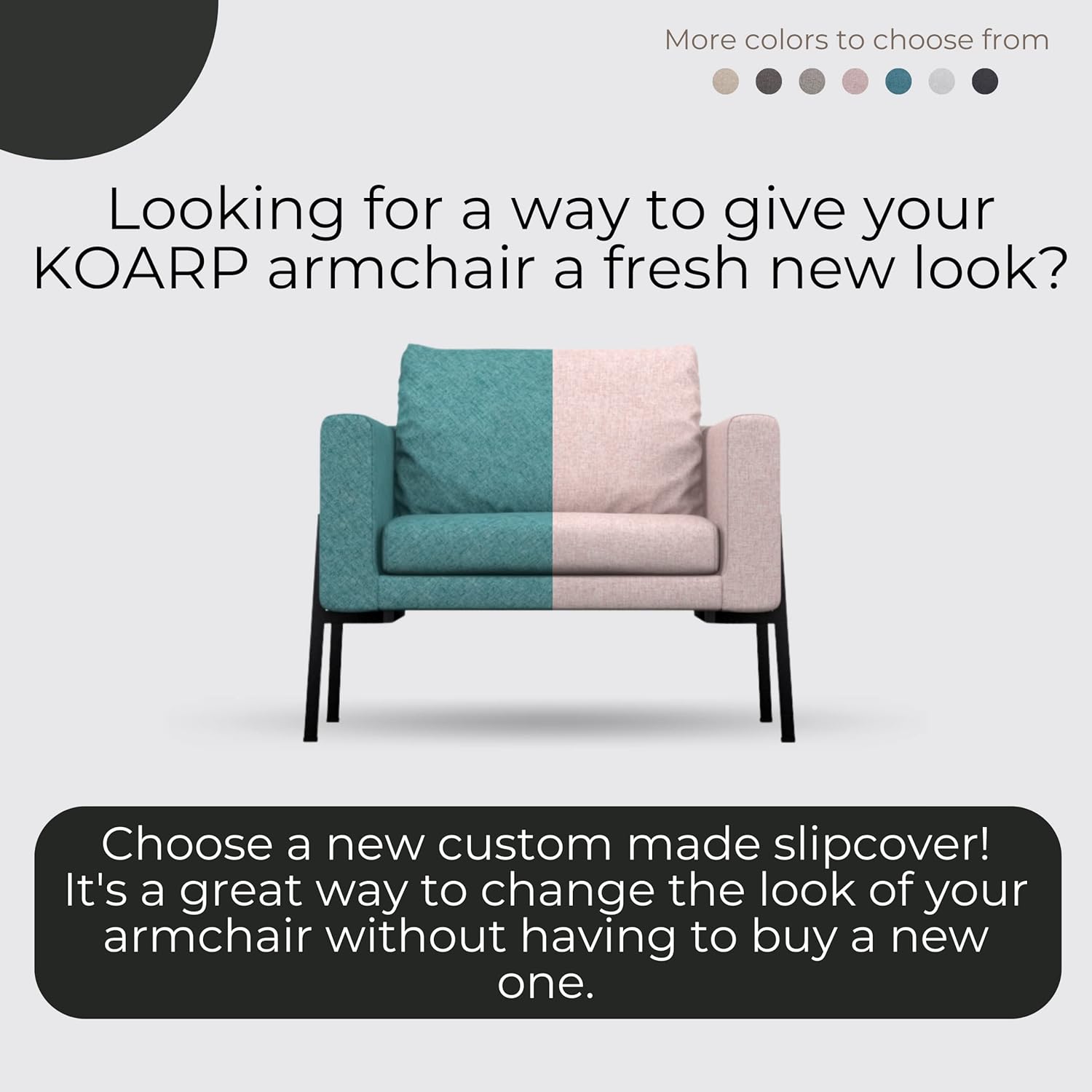 | Product Care Instructions | 1. Remove the existing Koarp Armchair slipcovers. 2. The Comfortly high-quality covers come in 3 separate pieces. Measure your armchair and compare the dimensions to the ones listed on the website before placing your order. 3. Once you have placed all of the covers in position, zip them up securely and enjoy your new furniture! We believe that comfort comes with INDIVIDUALITY, DETAILS and exceptional QUALITY. |