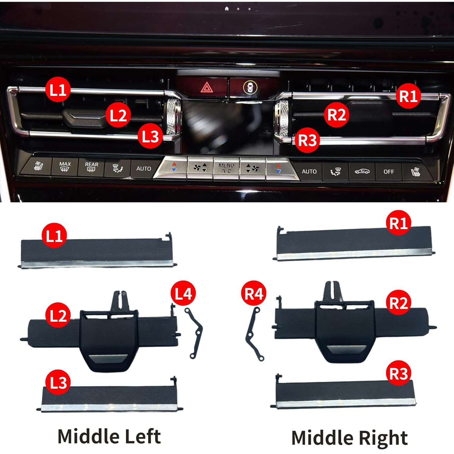 Material: PC and ABS, Rubberized Coating.Advantage: Perfect Repalcement,molding according to factory parts.Our Air Vent Clips Tab has upgraded the structure of the fragile part, and modified the connector of the ventilation clip, which is stronger than the original one. And our vent clips allow you to move the vent shutter up and down and close the vent just like the original label.Application:For BMW M8 ,F91 F92 (2017-2022)For BMW 8 Series 2-door, 4-door, G14 G15 G16 (2017-2022)