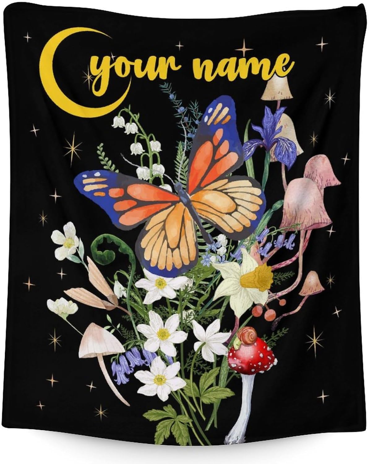 Special BlanketOur personalized flannel butterfly throw blanket, a variety of four sizes for your choice: 40 "x 30" lap size for pets, 50 "x 40" crib size for kids girls boys, 60 "x 50" throw size for teens, adult, women, 80 "x 60" twin size for bed, living room.Cute GiftGive this blanket to someone you love, children or family members can curl up in this fluffy blanket to read, watch TV, play games or spend quiet time, This is an excellent gift for animals fans.Premium Flannel MaterialOur flannel plush butterflies throw blanket with bright color, touch and comfy softness and constant warmness.