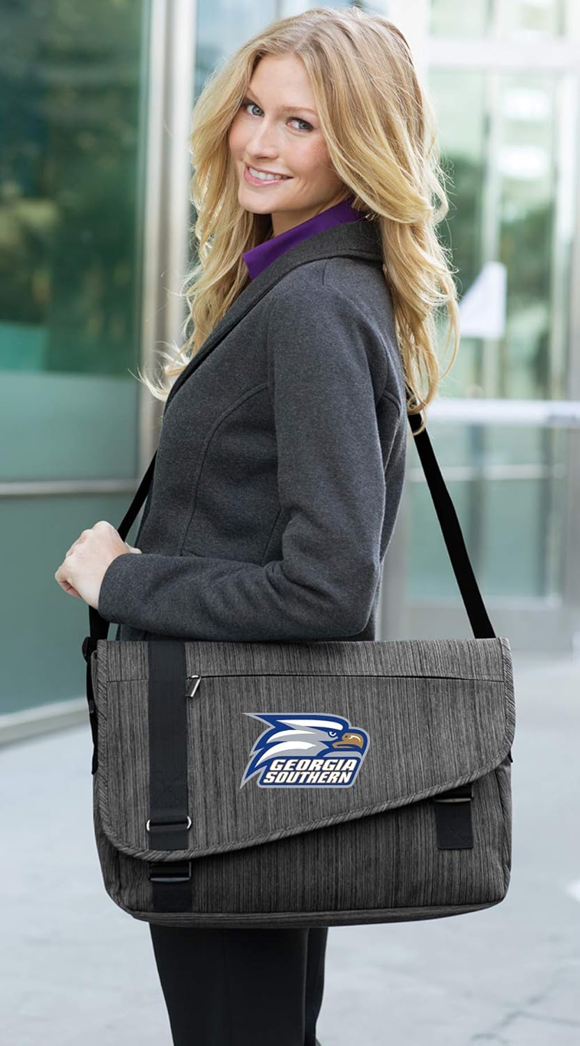 This stylish Georgia Southern computer bag is fully lined and features a large main compartment with divider and brushed, tricot-lined, padded tablet and laptop sleeves. This well-made Georgia Southern Eagles messenger bag has a comfortable wide, reinforced and adjustable carrying strap that can handle the weight of your laptop and more. Carry over the shoulder or across the body. Features super strong, rich looking, dye washed 1680 denier woven fabric. Dimensions: 13.5in h x 16in w x 5.5in d **OFFICIAL NCAA Georgia Southern Laptop Bags & Georgia Southern Messenger Bags - Up to 12% Returned To Support Georgia Southern Eagles Programs!