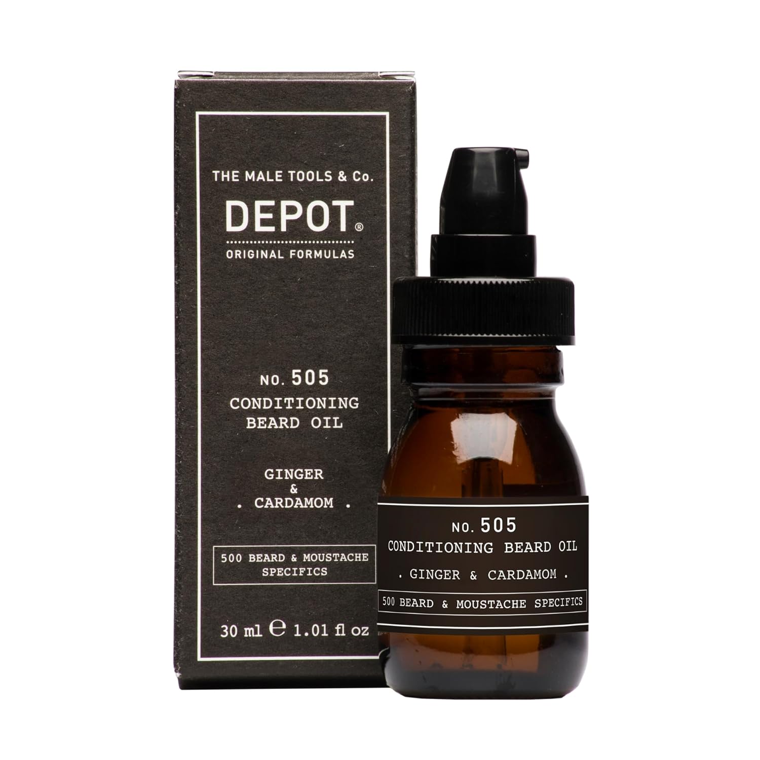 DEPOT 505 Conditioning Beard Oil Ginger & Cardamom is designed to nourish, soften, and enhance the beard with a lightweight yet deeply conditioning formula. Apricot kernel and jojoba oils deliver essential hydration and improved manageability, while castor flower oil strengthens and adds natural polish. Sunflower oil provides protective and antioxidant benefits thanks to its vitamin E content, helping maintain softness and resilience. Ideal for detangling and preventing breakage, especially in medium to long beards, this oil adds control, shine, and a smoother texture with every use. Finished withsweet notes of vanilla, it’s the perfect daily grooming companion.
