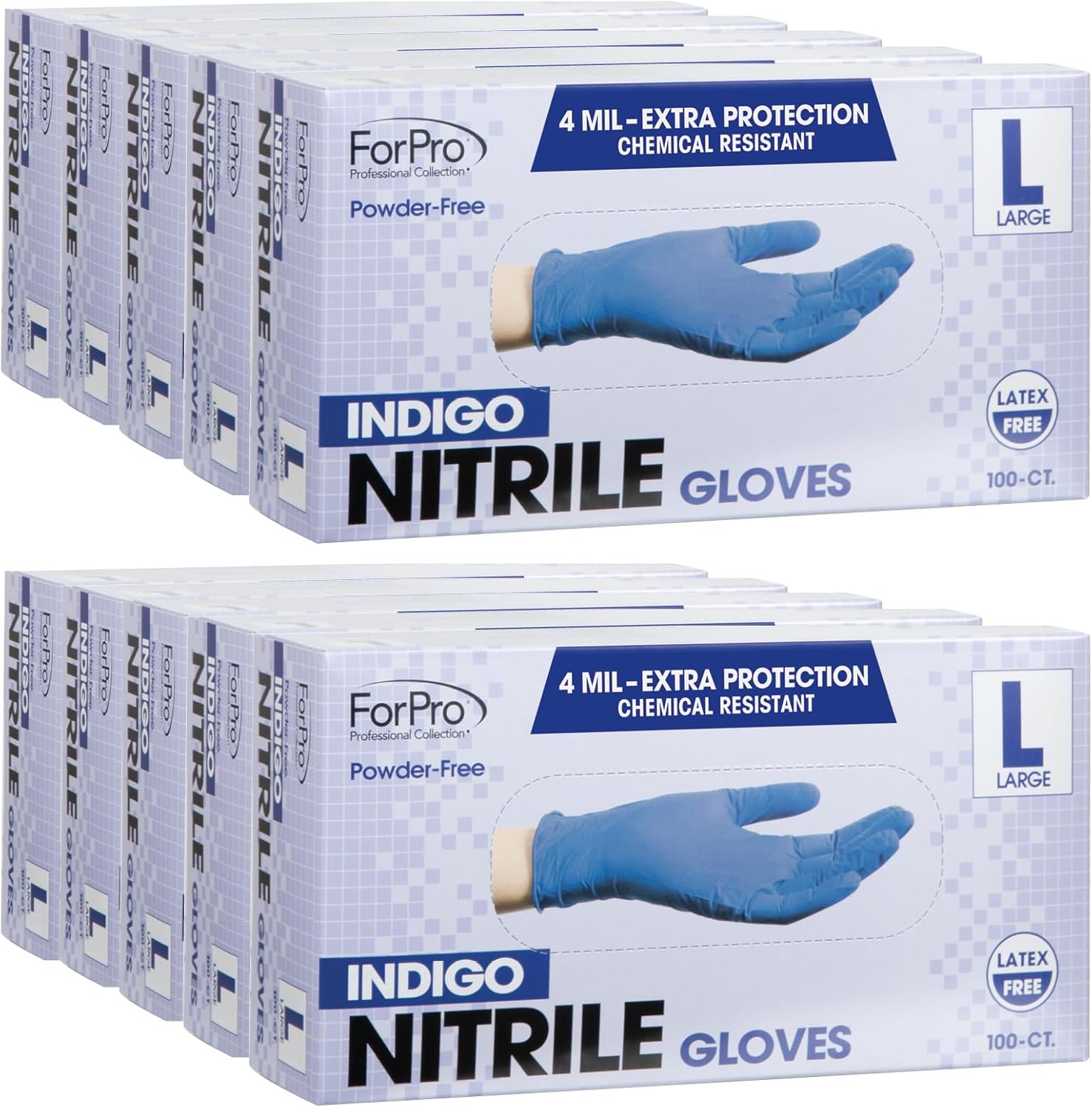 ForPro Disposable Nitrile Gloves offer superior strength and comfort. The textured finish provides slip resistance in wet or dry conditions. Each glove features a beaded cuff and is 4 mil. thick. They are non-sterile, powder-free, and latex-free. Why Choose Nitrile Gloves? Nitrile is chemical and puncture-resistant providing a higher level of protection against liquids, gases, and sharp objects. It does not contain any rubber or latex and is non-irritating. It is prefect for people with sensitive skin and those who are prone to allergic reactions. All ForPro gloves are manufactured according to ISO9001 and 13485 standards, your assurance of the best quality. All gloves exceed current ASTM standards for critical defect, tensile strength and puncture resistance. They also pass primary skin irritation testing in accordance with ISO 10993-10. ForPro Professional Collection features the highest quality, best value, and largest selection for professionals and consumers. All products include 100% unconditional guarantee.