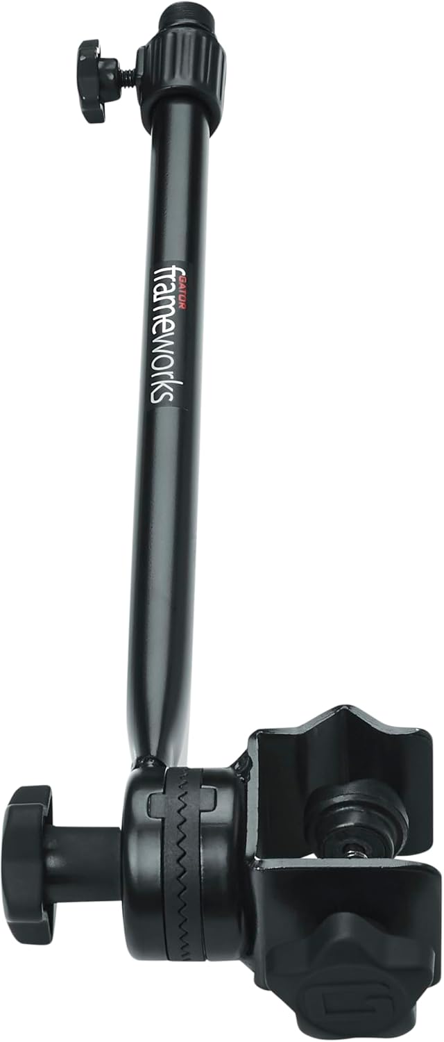 Gator Frameworks GFW-MIC-CLMPBM16 Adjustable angle clamp-on mini boom is ready to be your favorite accessory. The boom securely attaches to any tube diameter ranging from 15mm to 22mm. The 16” reach to the end of the boom provides ample distance. The angle adjustment clamp’s interlocking teeth securely locks the boom angle in place while allowing 270 degrees of rotationfor perfect placement. The 5/8 –27 Male Threads at boom end with jam nut fits on most any microphone. The GFW-MIC-CLMPBM16 by Frameworks is a great space saver when using a second microphone stand is not an option. As an added bonus the system clamps onto most desk surfaces As well.