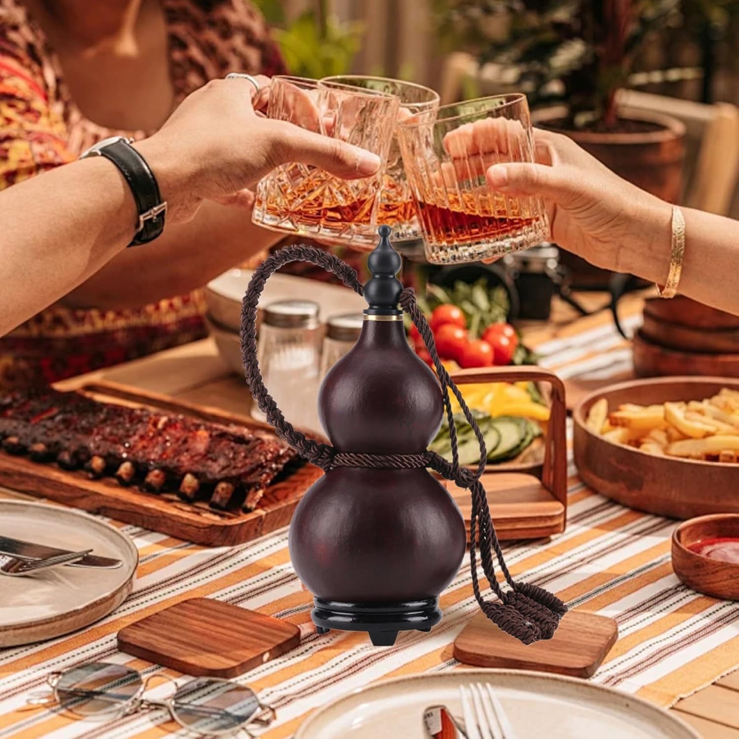 Description: The Gourd Water Bottle with Roped Cap is a stylish and practical accessory for anyone who enjoys staying hydrated on the go. The retro style and natural material make it a unique and eco-friendly choice. The leakproof design ensures that you can carry it with you without worrying about spills or leaks. With a large capacity of 500-750ml, this gourd water bottle provides ample space for your favorite beverage. Whether you're at the gym, traveling, or just running errands, this water bottle is a convenient and portable drink holder. The roped cap and lid add an extra layer of security, ensuring that your drink stays fresh and delicious. The gourd shape provides a comfortable grip, making it easy to hold and drink from. With its charming design and practical features, this gourd water bottle is a must-have for anyone who wants to stay hydrated in style. Features:. Gourd Water Bottle. -Color: As Shown. -Material: Natural Gourd. - Size: High: about 20 cm/7.87 inch. Top: about 5-8 cm/1.97-3.15 inch. Lower: about 8-12 cm/3.15-4.72 inch. -Capacity: about 500-750ml Note: Manual measurement, please allow slight errors in size. The colors may exist slight difference due to different screens. Package Including 1 x Gourd Water Bottle