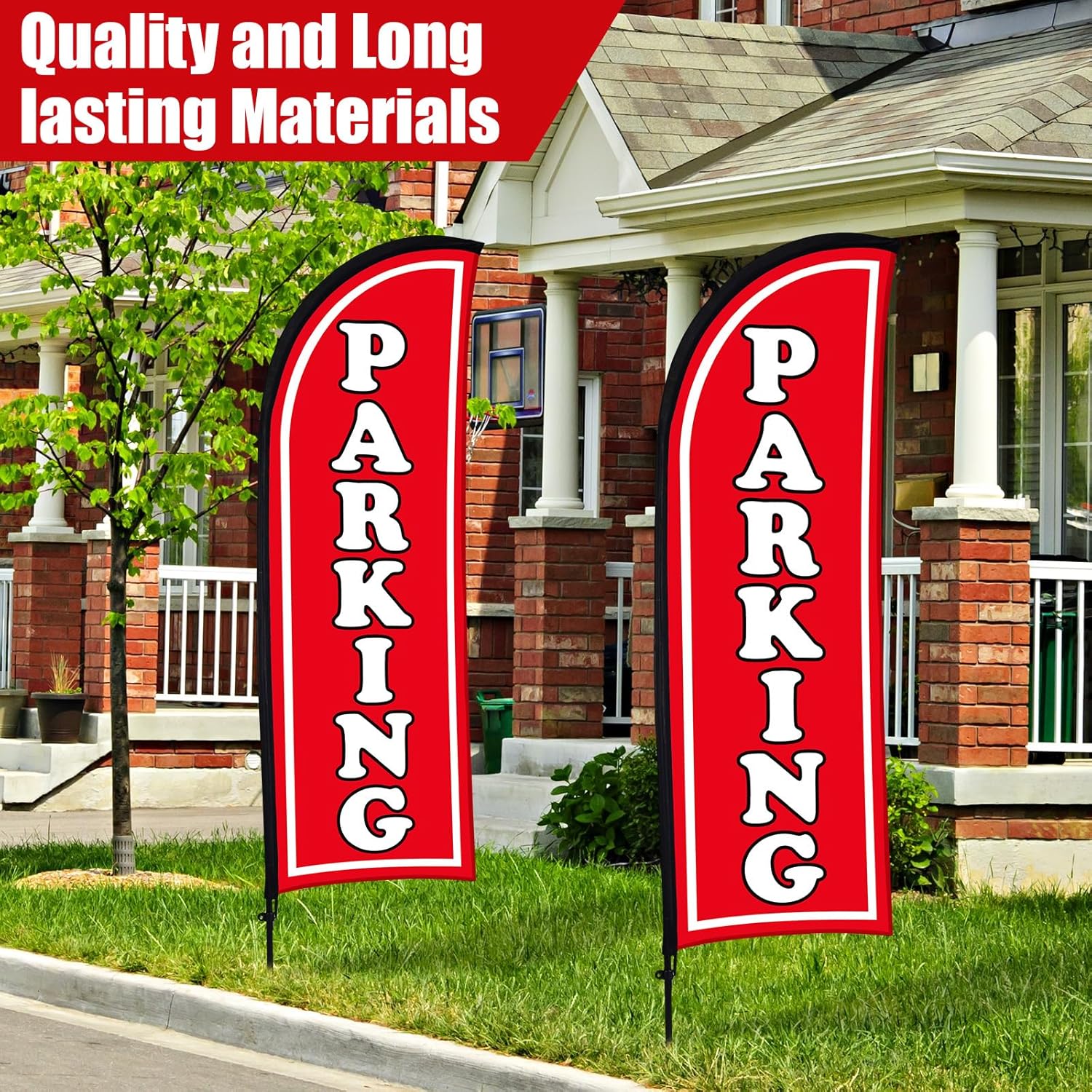 Features: These parking feather flag with poles are designed with your convenience in mind, their weight and size make them easy to transport between locations, and the setup process can be completed in just a few minutes Featuring an attractive interplay of bright colors, along with large text, these parking feather flags aim to stand out, drawing attention from far and wide and effectively signposting your tire sales. Specifications: Material: polyester and aluminum Color: red Size: 7 X 5.4 ft/2.1 X 1.6m Package includes: 2 x Parking Feather Flags kit Notes: Manual measurement, please allow slight errors on size. The color may exist a slight difference due to different screen displays