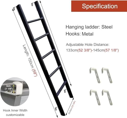 Our bunk ladder is designed for both safety and convenience, making it an essential addition to any bunk bed setup. Constructed from durable steel, this ladder ensures stability and can support a load capacity of up to 200kg (440lbs), making it suitable for both kids and adults. With an overall height that can be adjusted to 116cm (45 5/8"), 130cm (51 1/8"), 140cm (55 1/8"), or 150cm (59"), this ladder fits a variety of bunk beds. Its compact width of 33.5cm (13 1/4") makes it a versatile choice for dormitories, kids' bedrooms, or RV bunk beds. Installation is straightforward and quick, allowing you to set it up without any hassle. The included hooks can be adjusted freely to meet your specific needs, ensuring a perfect fit for your bunk bed. Not only does our ladder provide easy access to the top bunk, but it also enhances the overall safety of your sleeping environment. Whether you’re setting up a cozy space for your children or maximizing space in an RV, this portable ladder is an ideal solution. Please note that slight measurement errors may occur due to manual measurement, and color variations may exist due to lighting conditions. We are dedicated to providing excellent customer service. Should you have any questions or concerns regarding your order, do not hesitate to reach out. We are here to assist you promptly. Choose our bunk ladder for a reliable, safe, and user-friendly climbing solution that meets your needs and enhances your living space.