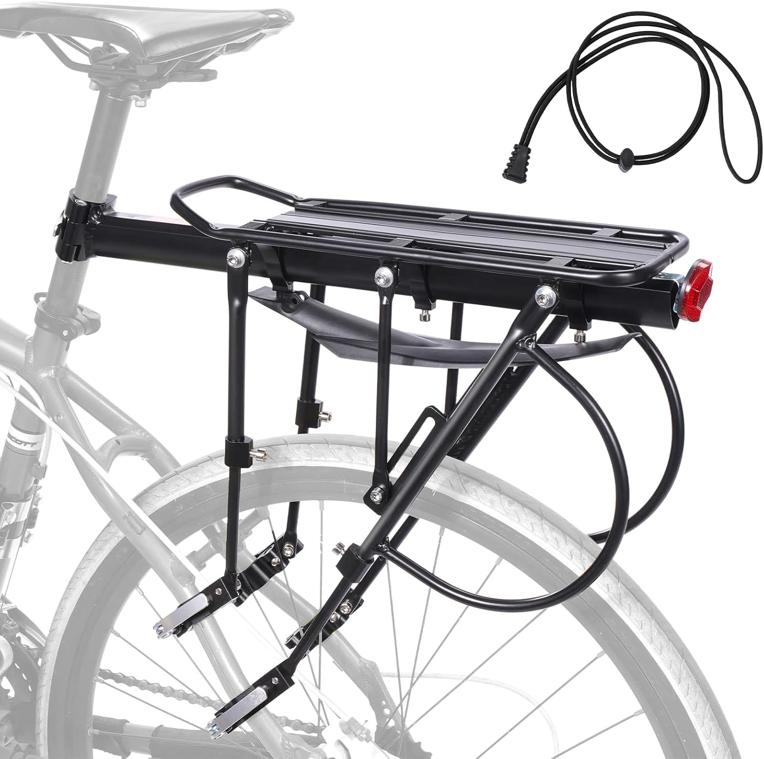 Rear Bike Rack,Bike Cargo Racks Frame Aluminum Alloy Universal Adjustable Cycling Equipment Stand Footstock Bicycle Luggage Carrier with Tools and Reflector for 26"-29" Frames