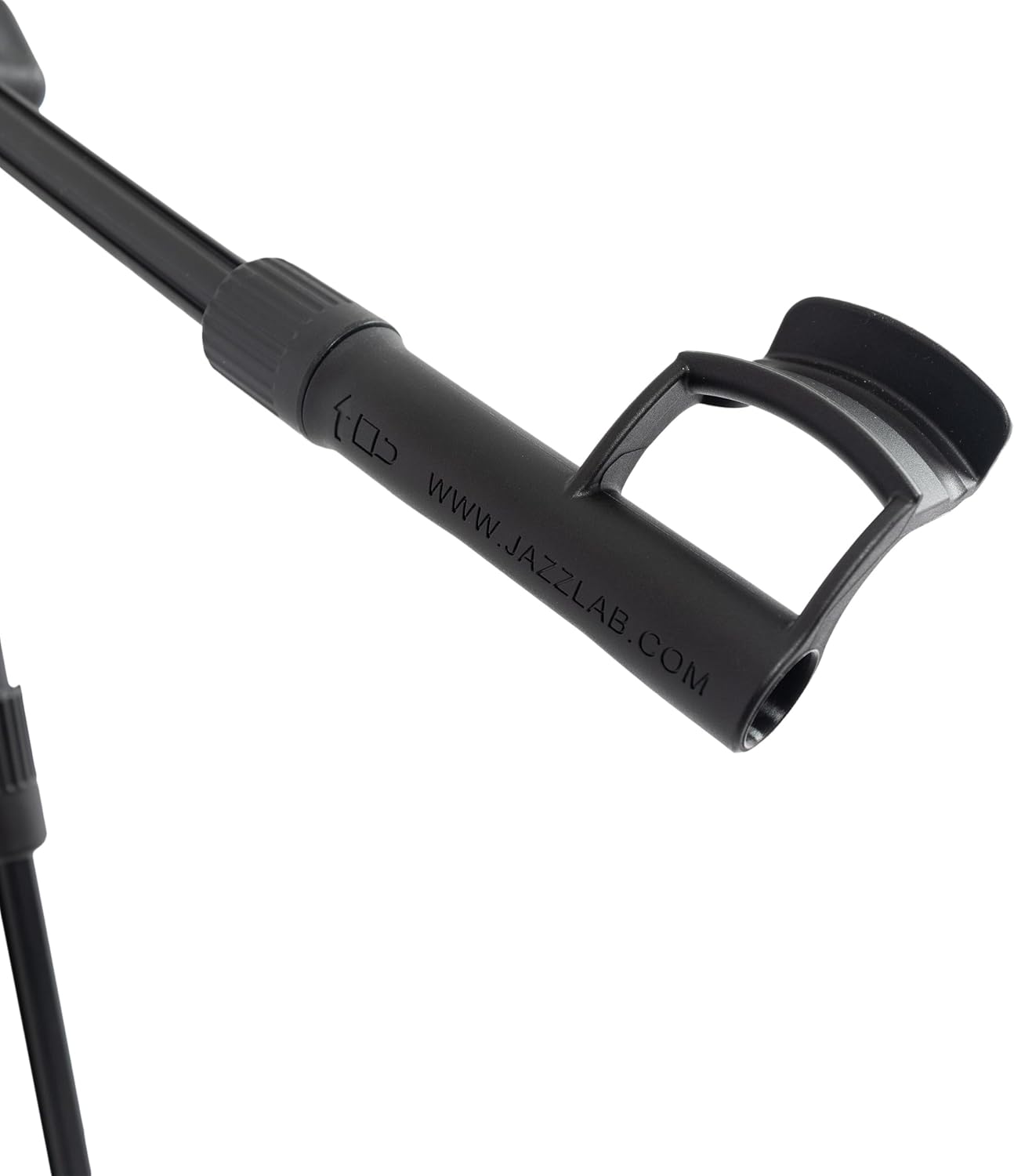Revolutionary design The Jazzlab TrumpetHolder is the latest revolutionary instrument support product from the brains behind the hugely popular SAXHOLDER. TrumpetHolder is a high-tech product, that uses aircraft and aerospace travel materials: it is manufactured from fibre-reinforced high-performance plastic and aircraft aluminium. The weight of the TrumpetHolder in use is only 248 gr. The patented three-point support system eliminates all stress from your neck and transfers the weight of the instrument across the shoulders and to the stomach. This makes the instrument feel lighter and allows you to play for longer periods of time without worry of neck strain or back ache. To use, simply swing both the shoulder handles up until they click into place, pull out the telescopic slide and rotate the abdominal rest and you are ready to attach your instrument. The holder provides great comfort for the player when seated, standing or even marching! playing The pads which sit on the players shoulder have also been designed to be large enough to help to spread the weight of the instrument very effectively. Suitable for any player TrumpetHolder is great for all makes and models of trumpet and is supplied with a pull tie cloth bag for safe storage. This medium version is suitable for players up to 190cm tall or less than 100kg in weight. What’s included TrumpetHolderMulti-language manualA bag/pouch