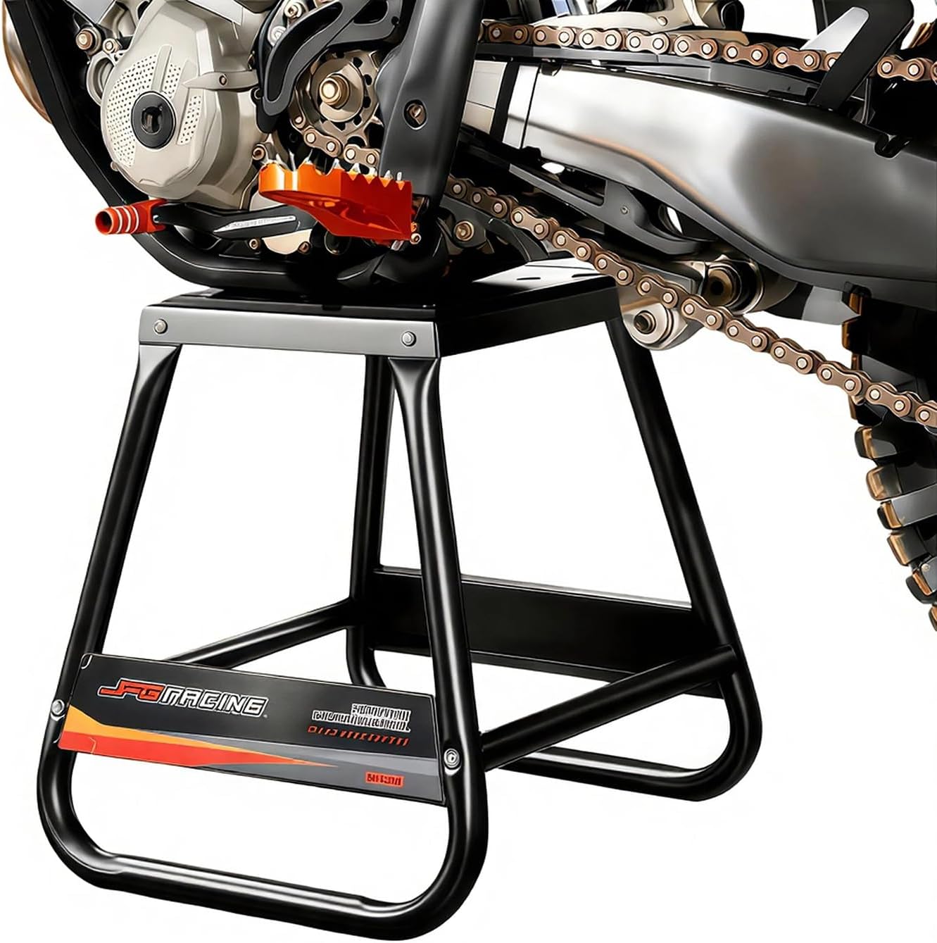Features:The dirt bike stand is constructed of high-strength iron with a maximum bearing capacity of 330 pounds. The bottom of the dirt bike lift is equipped with a freely movable universal wheel and wheel lock, which can make the motorcycle tripod move and stop freely. All parts of the maintenance stand can be disassembled freely, which is convenient to carry and brings convenience to customers. The dirt bike lift stand can easily lift your motorcycle from 4 inches to 18 inches for easy maintenance work. The tool tray is installed in the middle of the pit bike stand, and various maintenance tools can be placed, saving time and effort, and easy to operate. Easy to install. Specification: Color: As pictures. Material: Iron. Product weight: 5700g. Product size: 25cm*26.5cm*42cm. Fitment For universal for most motorcycles. Package Include: 1*Dirt bike stand as pictures. Instruction of installation is not included.