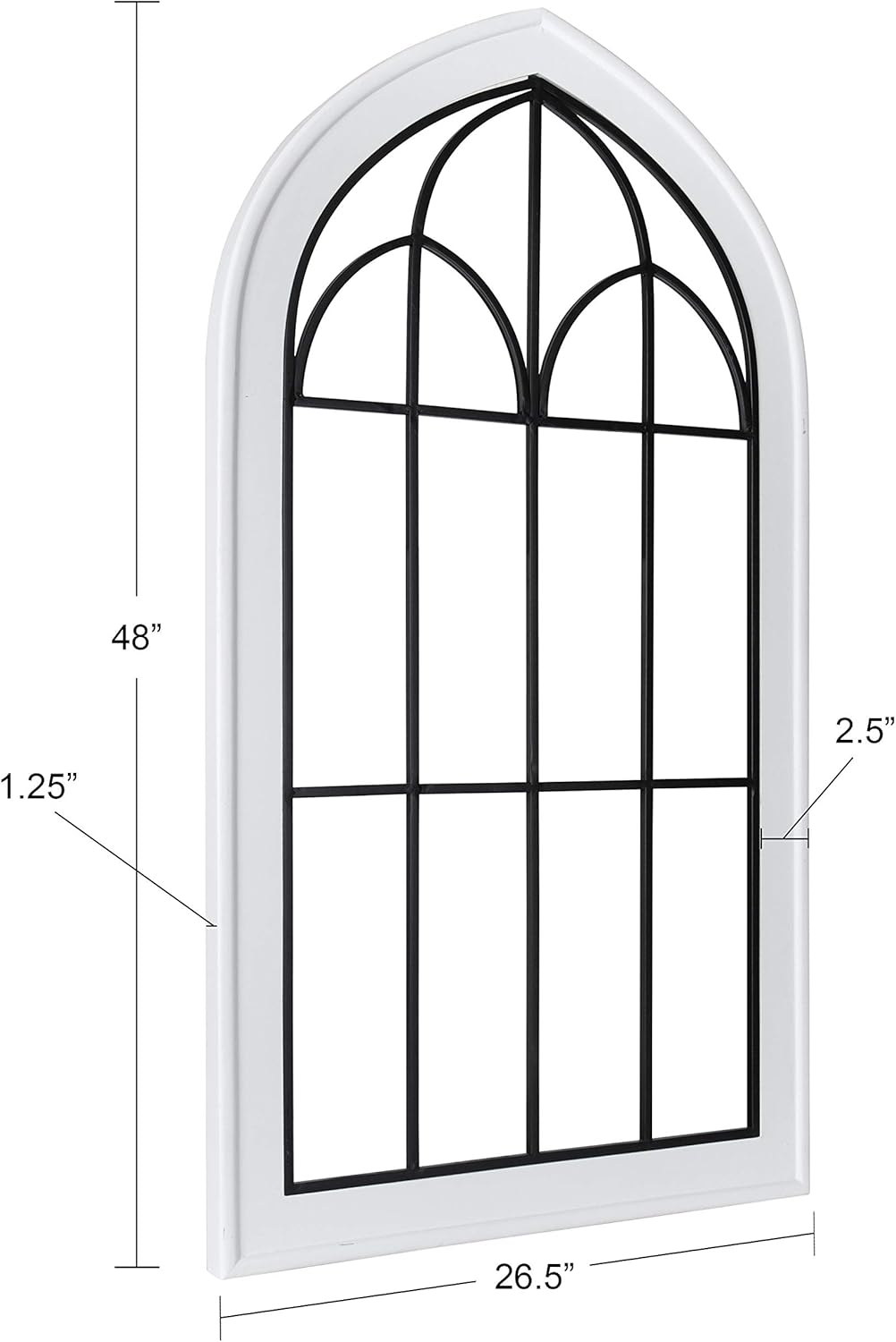 The Rennell plaque introduces sophistication and a farmhouse aesthetic to your home without a large and costly renovation. Inspired by the dramatic beauty of cathedral windows, the Rennell incorporates the elegant symmetry of delicate arches within its form and metal inlay. The distressed white finish on the frame and the sleek black finish on the inlay give it a look that's both vintage and blends seamlessly into farmhouse decor. The vintage finishes provide the look and texture of antiquities without the work of second-hand shopping. The decorative Rennell plaque's overall dimensions are 26.5 inches wide by 1.25 inches deep by 48 inches tall, making it a fantastic focal point that will create a commanding presence within your home decor. Hang the Rennell on its own to make a bold statement or create a beautiful wall display by hanging multiple in one area. This timeless piece of wall decor includes metal D-ring hangers attached to the back for quick and easy installation in a matter of minutes.