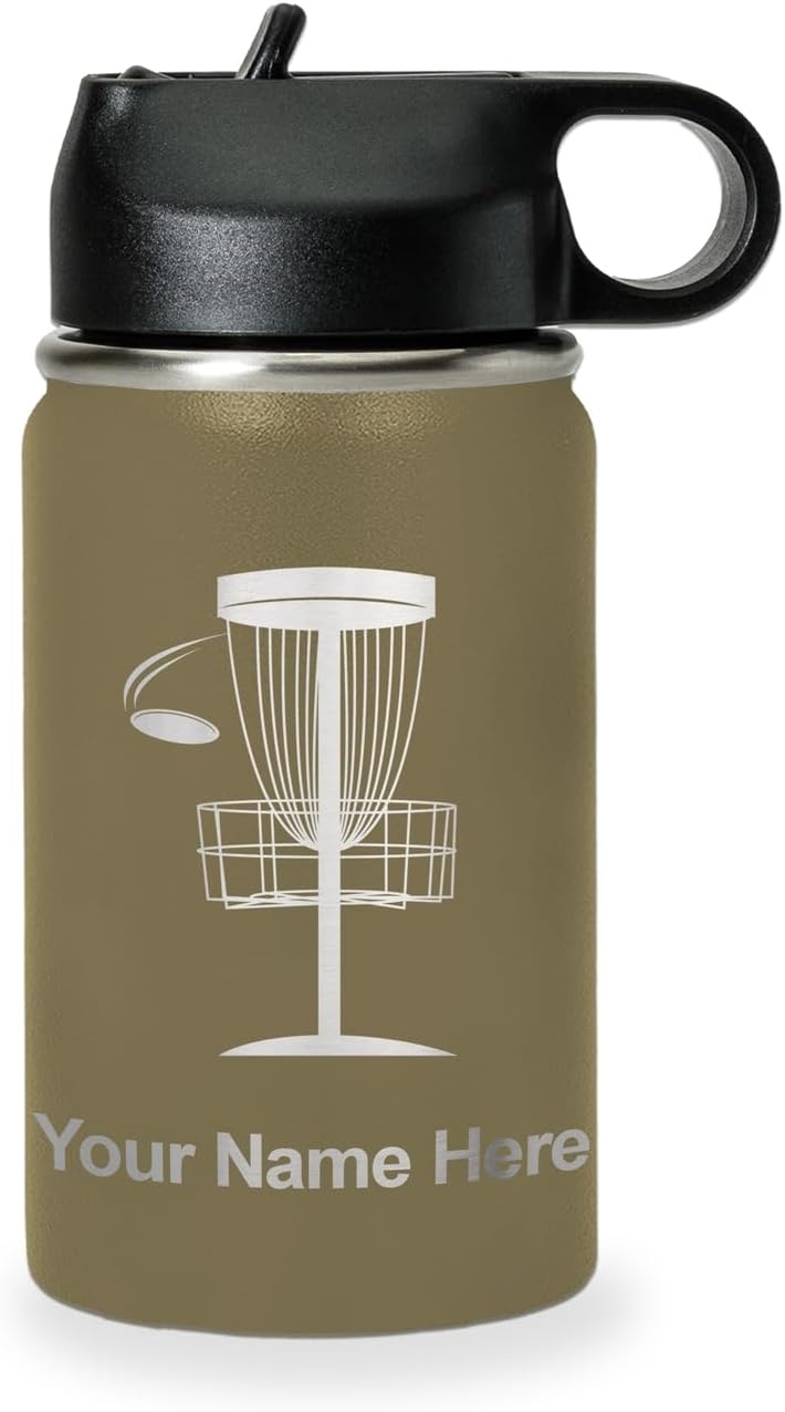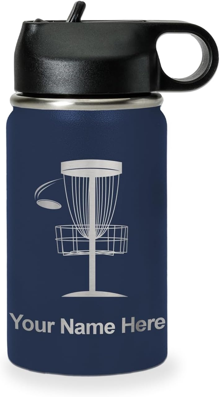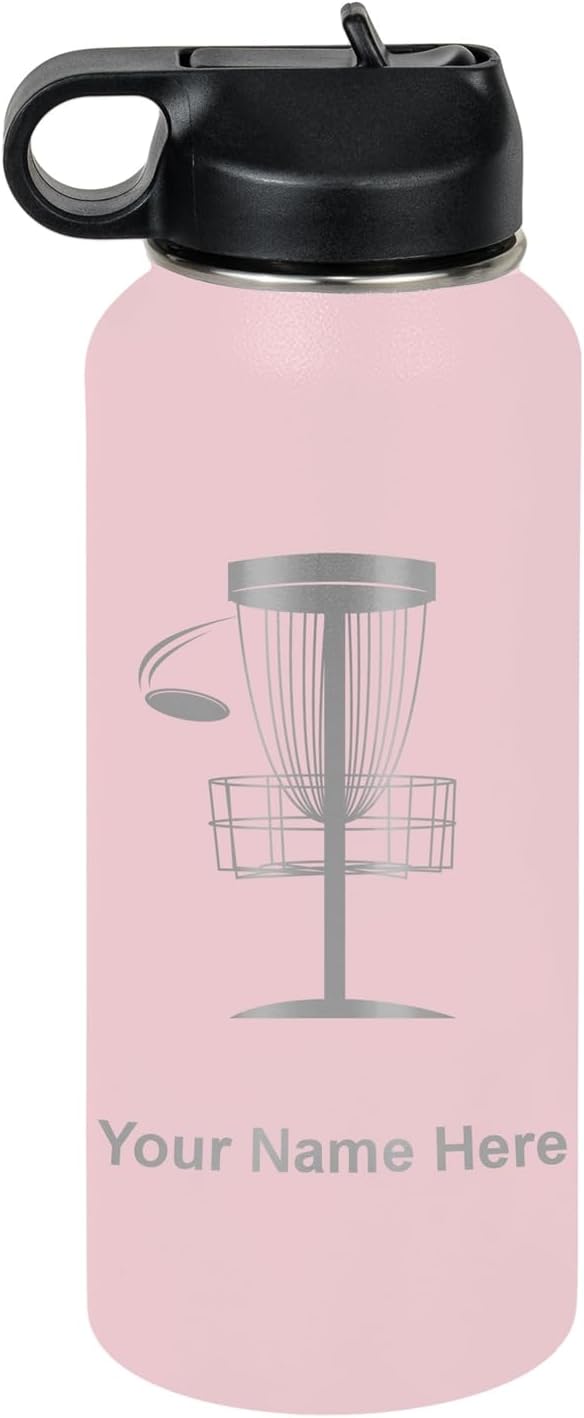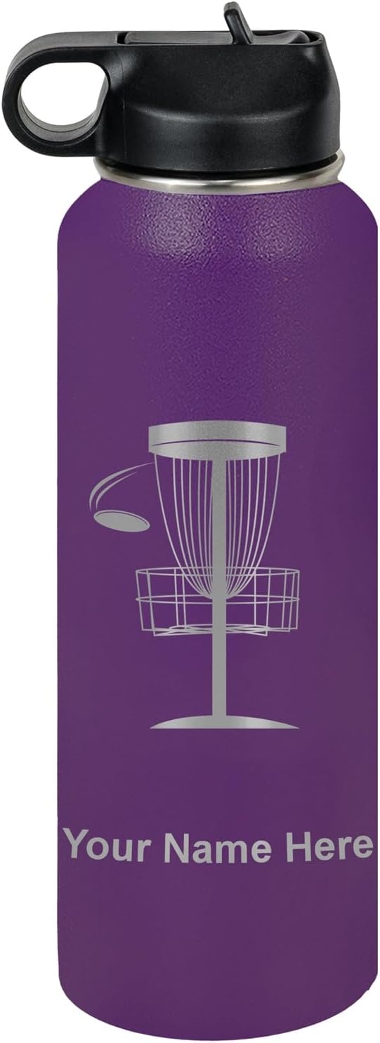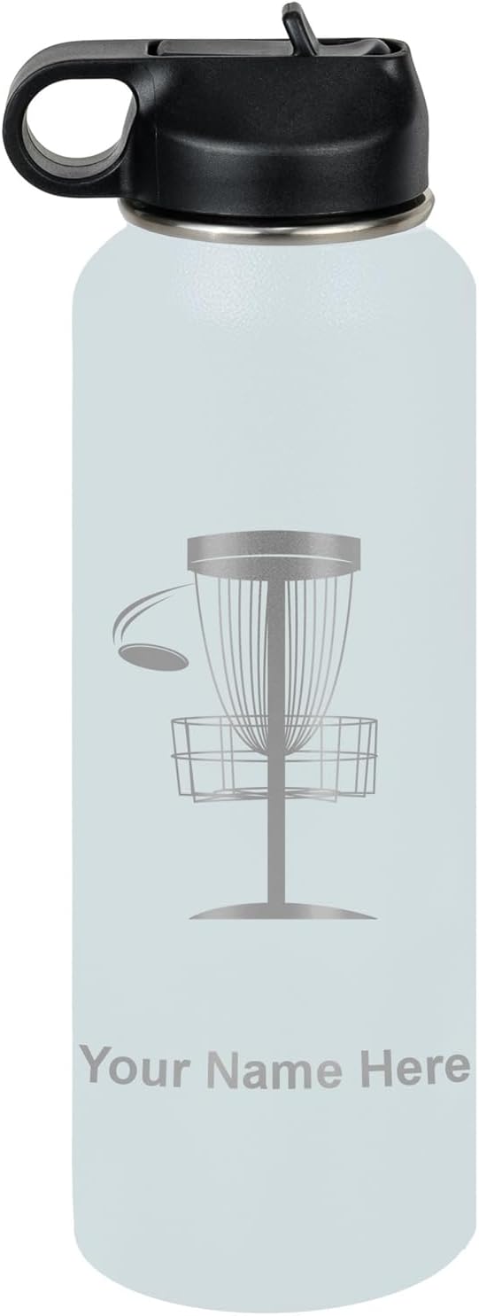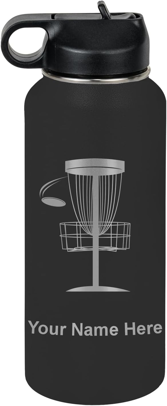 LaserGram Personalized Water Bottle, Disc Golf, Stainless Steel Double Wall Vacuum Insulated with Flip Top Straw, Custom Engraved Gift (40oz / 1180ml Black)