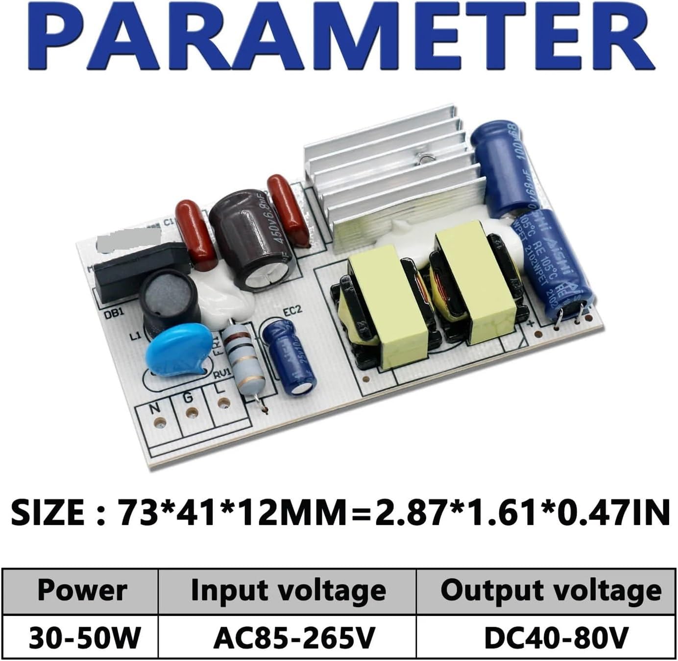 Industrial Power SupplyProduct introductionProduct name: 30-50W certified non-isolated power supplyComply with certification: exceeds EMC (3C/CE/ROHS)Input voltage: AC85-265VPF: 0.9Output voltage: DC40-80VOutput current: 560mAProduct size: 73*41*12mmProduct features: This product is a constant current drive power supply using a professional chip. The output voltage will be automatically adjusted according to the voltage of the connected lamp. The circuit has overcurrent protection, short circuit protection, and open circuit protection.Note: Non-isolated power supply is strictly prohibited to be used without load. (There is a risk of damaging the lamp beads after powering on.)==========Features: Built-in driveWeight: 50gModel: TD454Output signal: DCInput signal: ACOutput voltage: DC40-80VInput voltage: 85-265VProduct Type: Lighting TransformerOutput current: 550-560mASize: 73*41*12mm