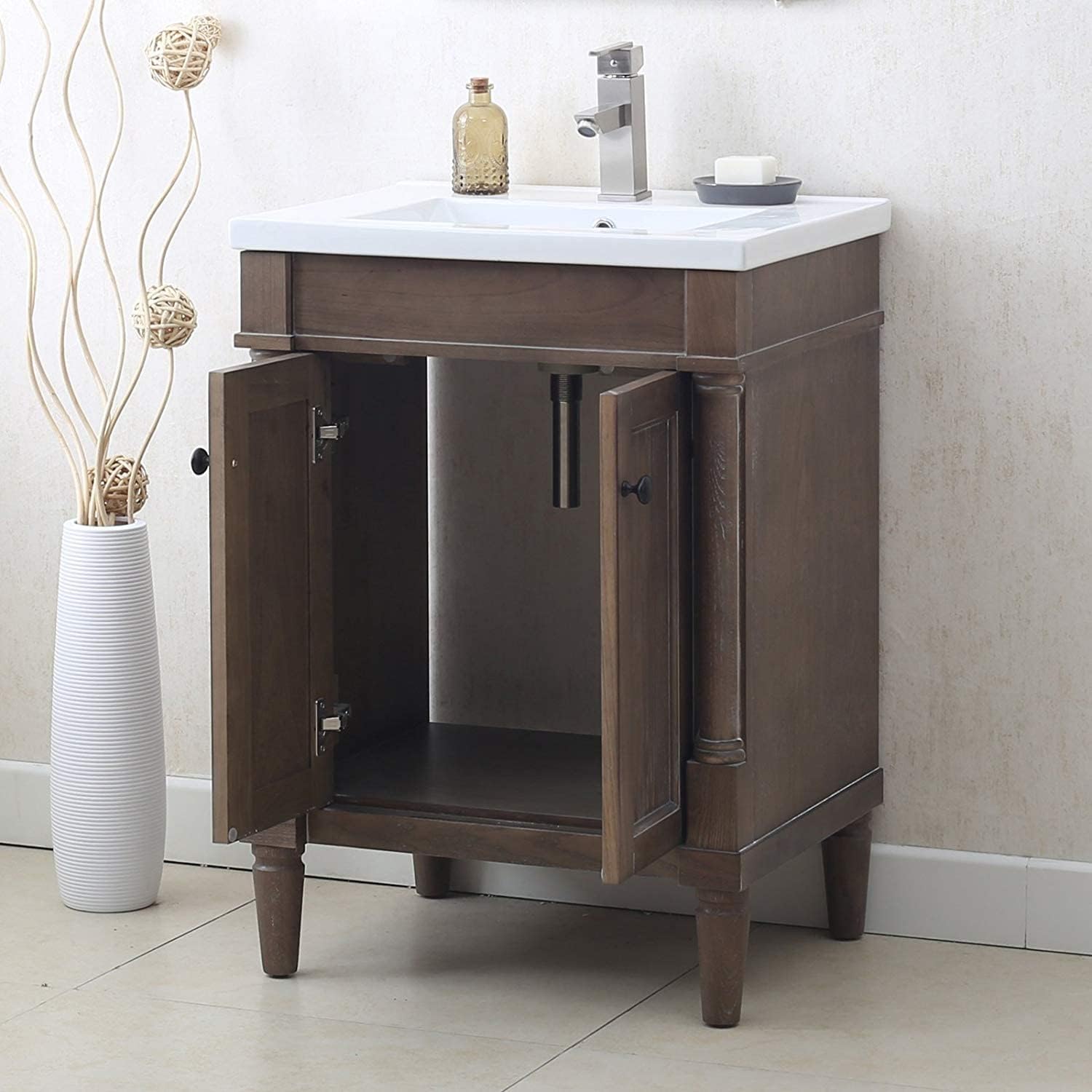 24 inch weathered Gray single sink bathroom vanity no faucet.