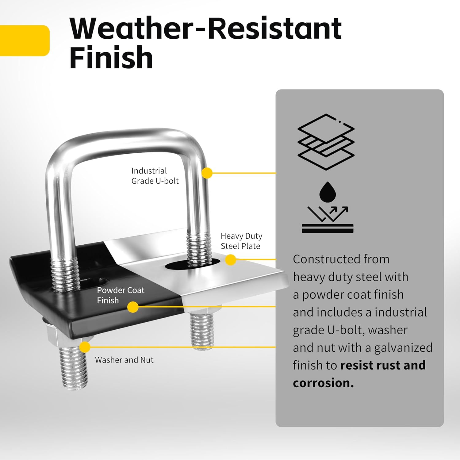 Our MaxxHaul hitch tightener is constructed from heavy duty steel to prevent wobbling, rocking, rattling And hitch movement on hitch mount bike racks, cargo carriers and other hitch mount towing accessories. Features a Industrial quality galvanized U-Bolt, washer and nut and a steel plate with powder coat finish to handle all weather conditions. Easy and simple to install. Quickly installs on Class I, II, III and IV or 1. 25" To 2" Receiver hitches. Great to use on different tow and carry vehicles such as SUV, pickup trucks, RV's, vans, sedans, minivans, campers and more. Perfect for ball mounts, drop hitches, adapters, extenders and more.