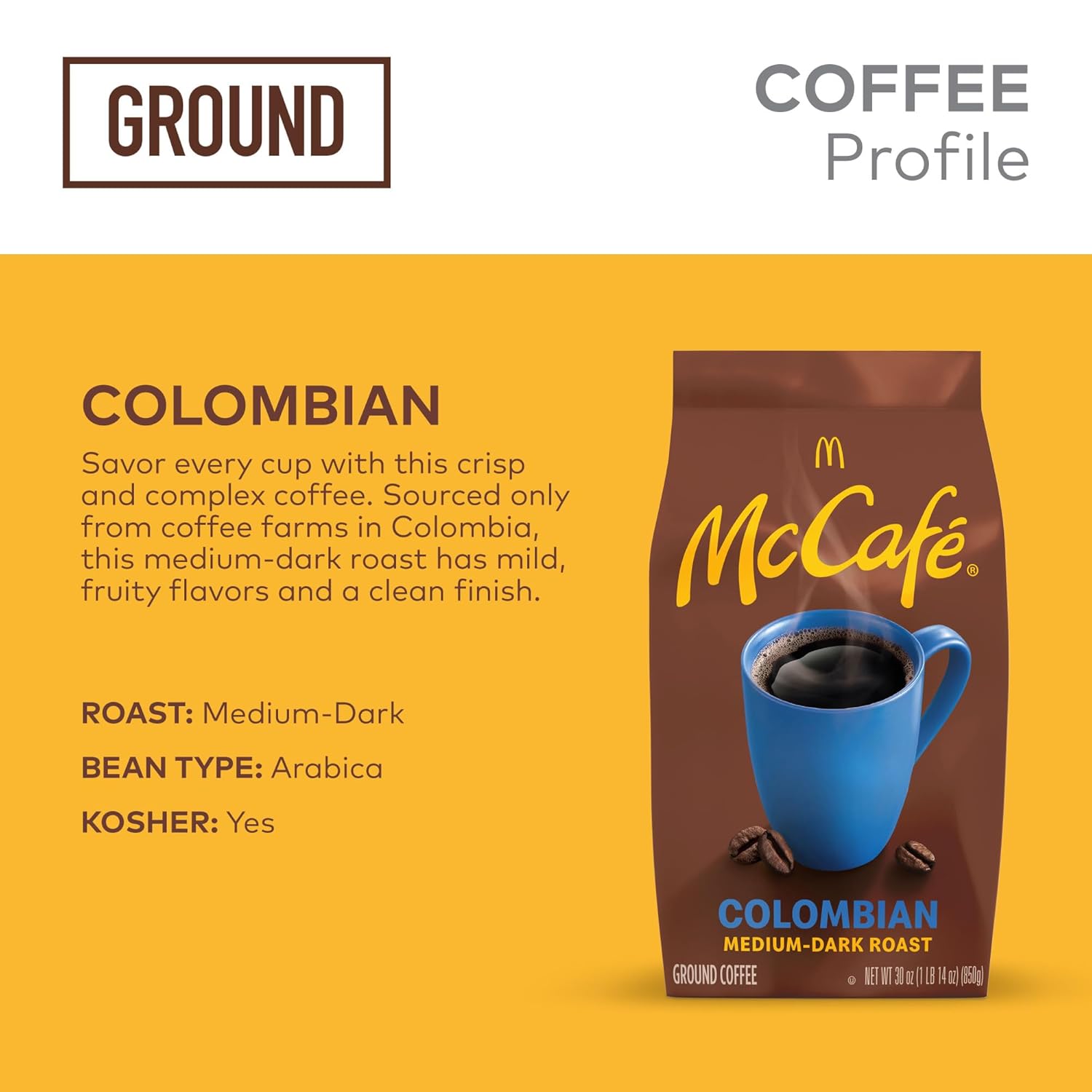 McCafe Colombian, Ground Coffee, Medium-Dark Roast, Mild Fruity Flavors, Premium Quality, Responsibly Sourced, Kosher Certified, 30oz. Bag