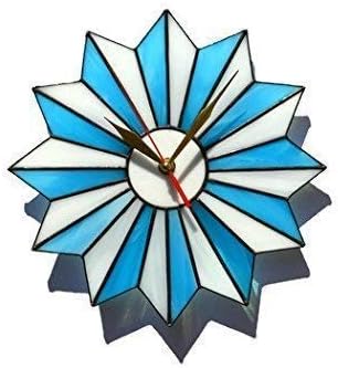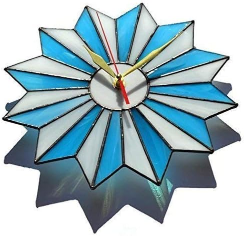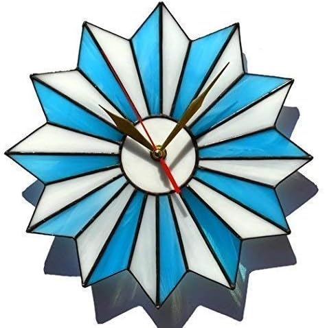 Mid century modern wall clock with geometric design made of stained glass in turquoise blue and white colors with a black finish. This atomic starburst piece looks both eye-catching and simple. And it is a great way to add a striking touch to customary walls. Perfect wall decor for living room, bedroom, kitchen and dining to make your home space unique. And it's a wonderful gift idea for wedding, housewarming and anniversary. You can choose this item in two different sizes:25 cm (approx. 10”)35 cm (approx. 14”)