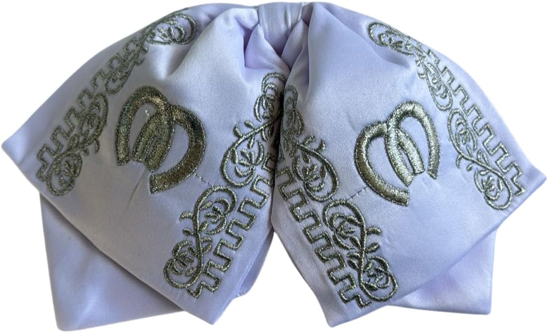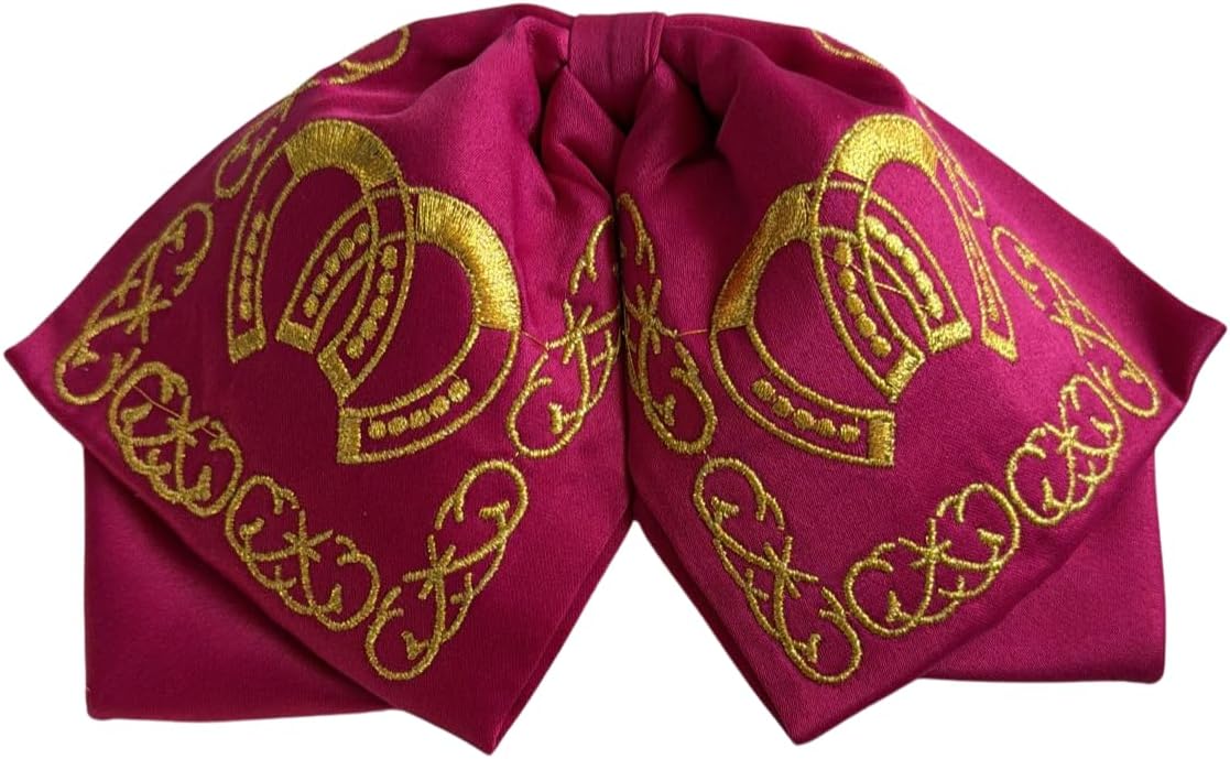 Handmade Materials: stretch satin fabric *Elegantly crafted by extraordinary Mexican tailors *Perfect for activities related to mariachi and charreria *The embroidery is a silver thread, and the cloth is red, white, black, Gold, Ivory and fucshia satin *This two colors are perfectly combined, giving the bow a beautiful look. *It has a 1 inch adjustable elastic, that allows the bow to stay in place. *Bow tie only for adults, used by singers, Vicente and Alejandro Fernandez use this type of balloon bow tie.