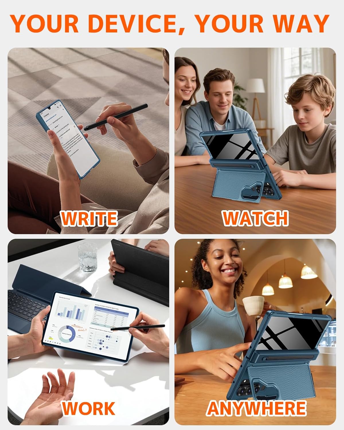 | Additional Features | Stylus Pen and S Pen Holder, Fit for Magnetic, Spine Hinge Cover, Hidden Kickstand, Built-in Anti Peep Privacy Screen Protector, Shockproof, Anti Slip Textured, Anti-Scratch, Anti-Fingerprint , Support Wireless Charging |