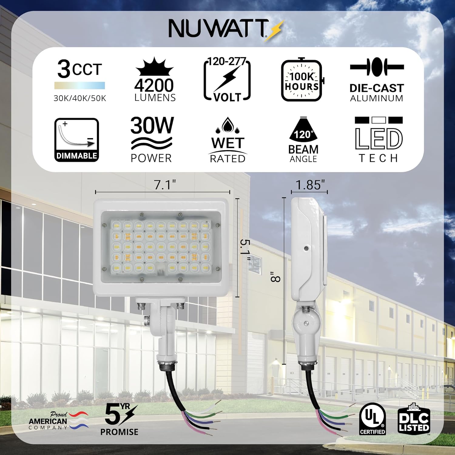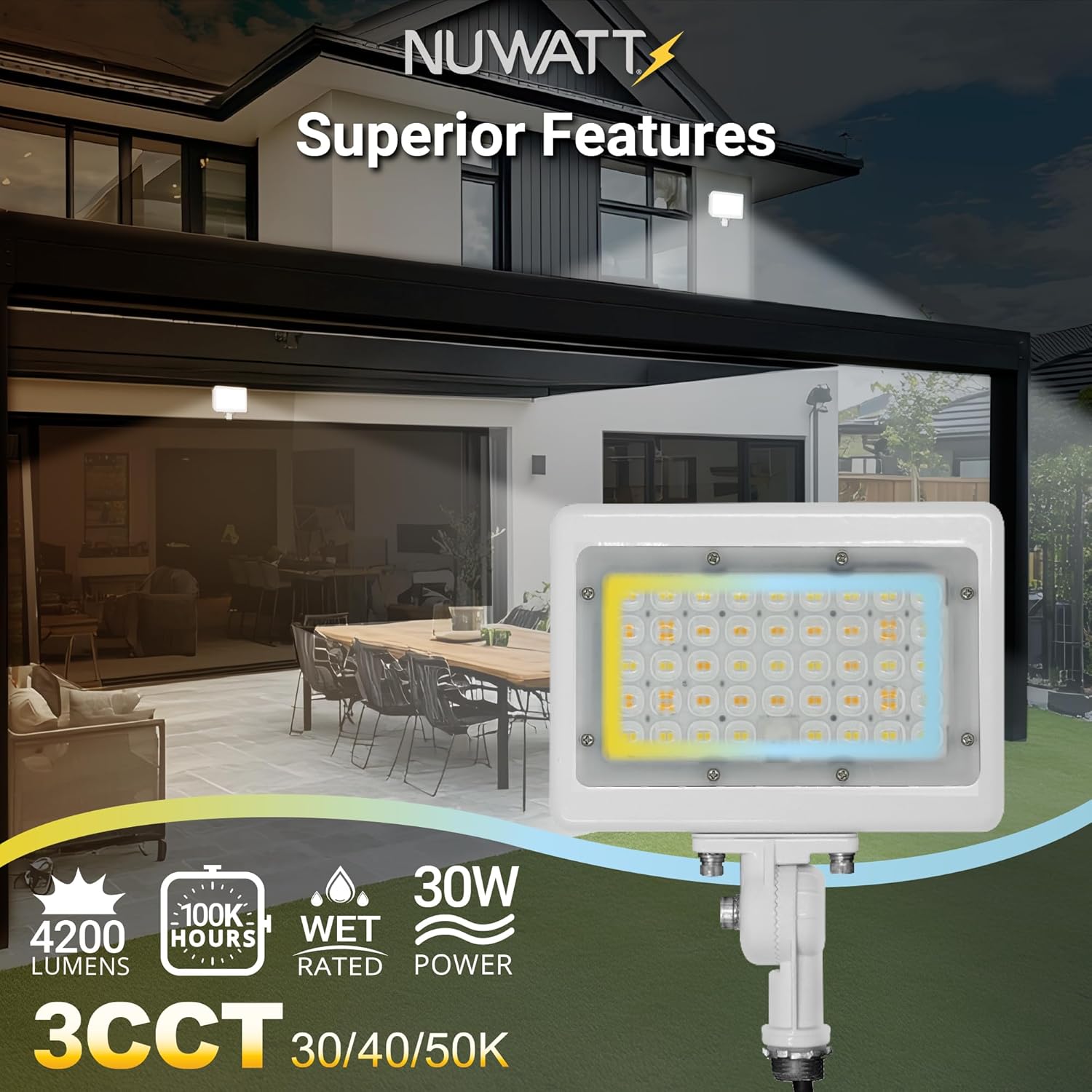 | Model Name | NuWatt 30W Knuckle Mount White LED Flood Light |