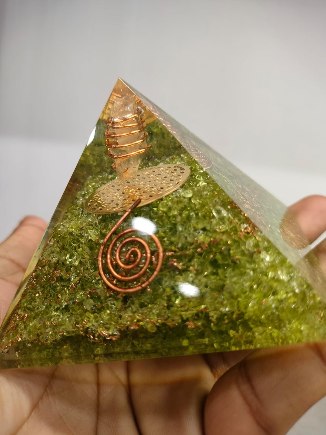 ๐ Amazing Gemstone Orgone Pyramid โ Peridot, Quartz & Copper Coil for Healing & Positive Energy ๐ This handcrafted Orgone Pyramid features Peridot Crystal, Quartz Point, and a Healing Copper Coil, making it a powerful energy amplifier and spiritual protector. Peridot is known for attracting success, emotional balance, and personal growth, while Quartz enhances energy flow and chakra healing. Whether for meditation, Reiki, or home decor, this pyramid cleanses energy, blocks negativity, and promotes inner harmony